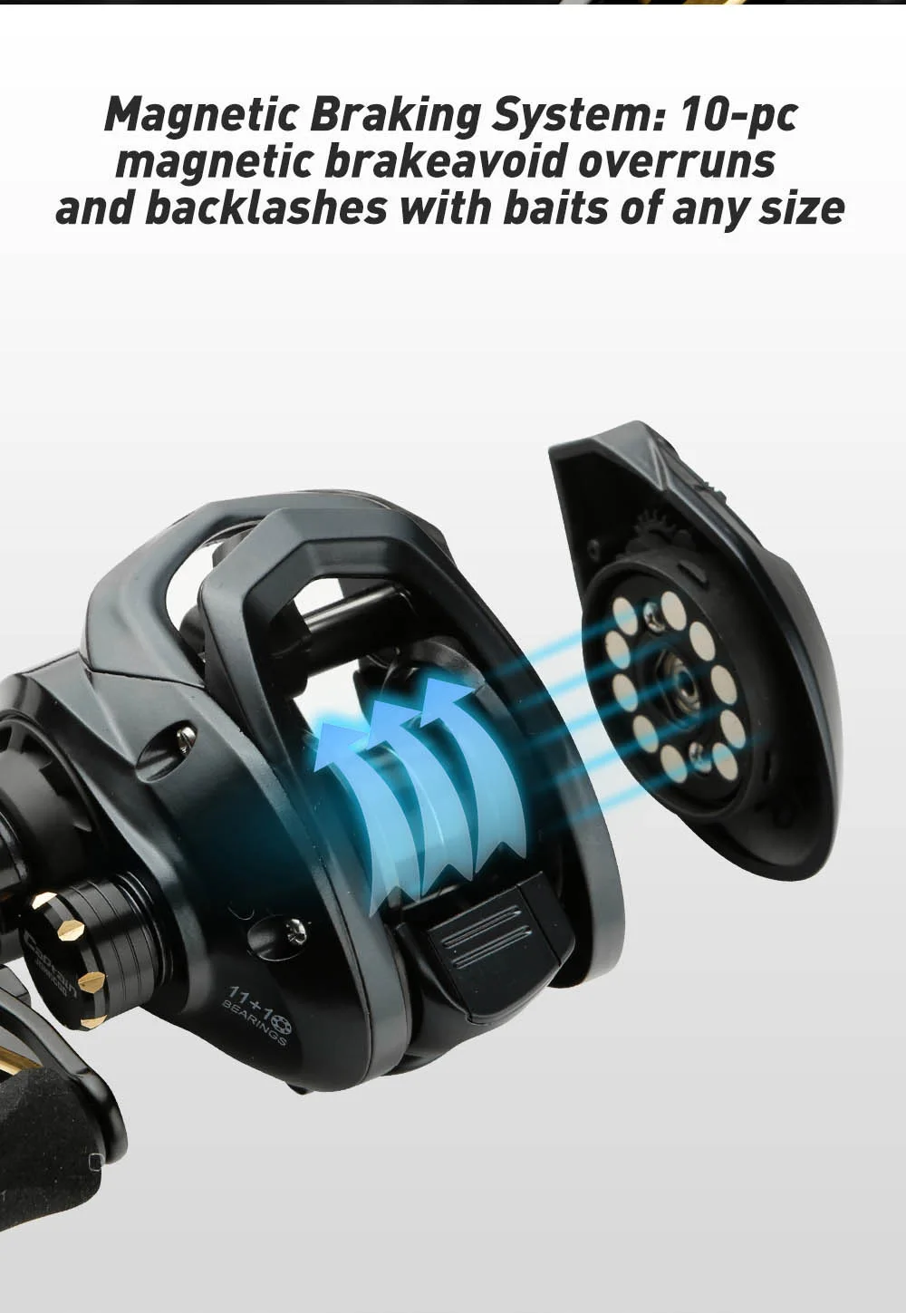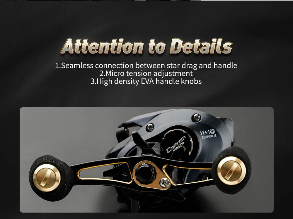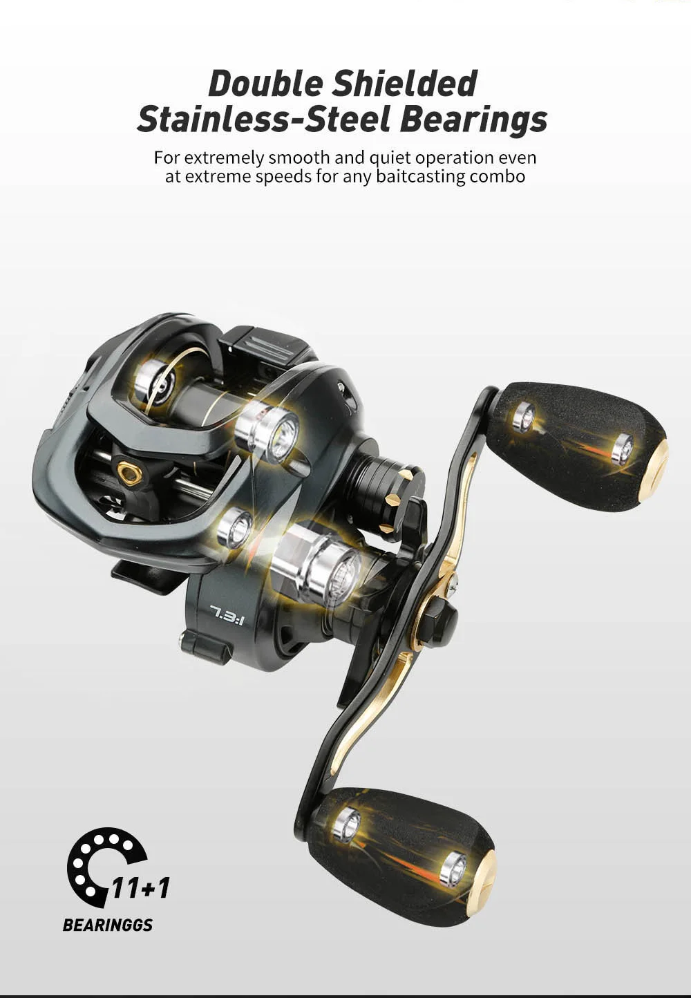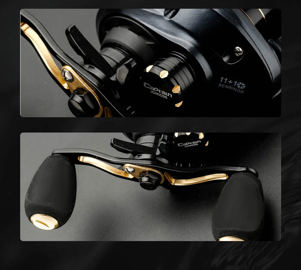 JOHNCOO-carrete de pesca de fundición larga, 11 + 1 rodamientos 7,3: 1 Johncoo, arrastre máximo de 18lb, potente Carrete con carrete poco profundo
