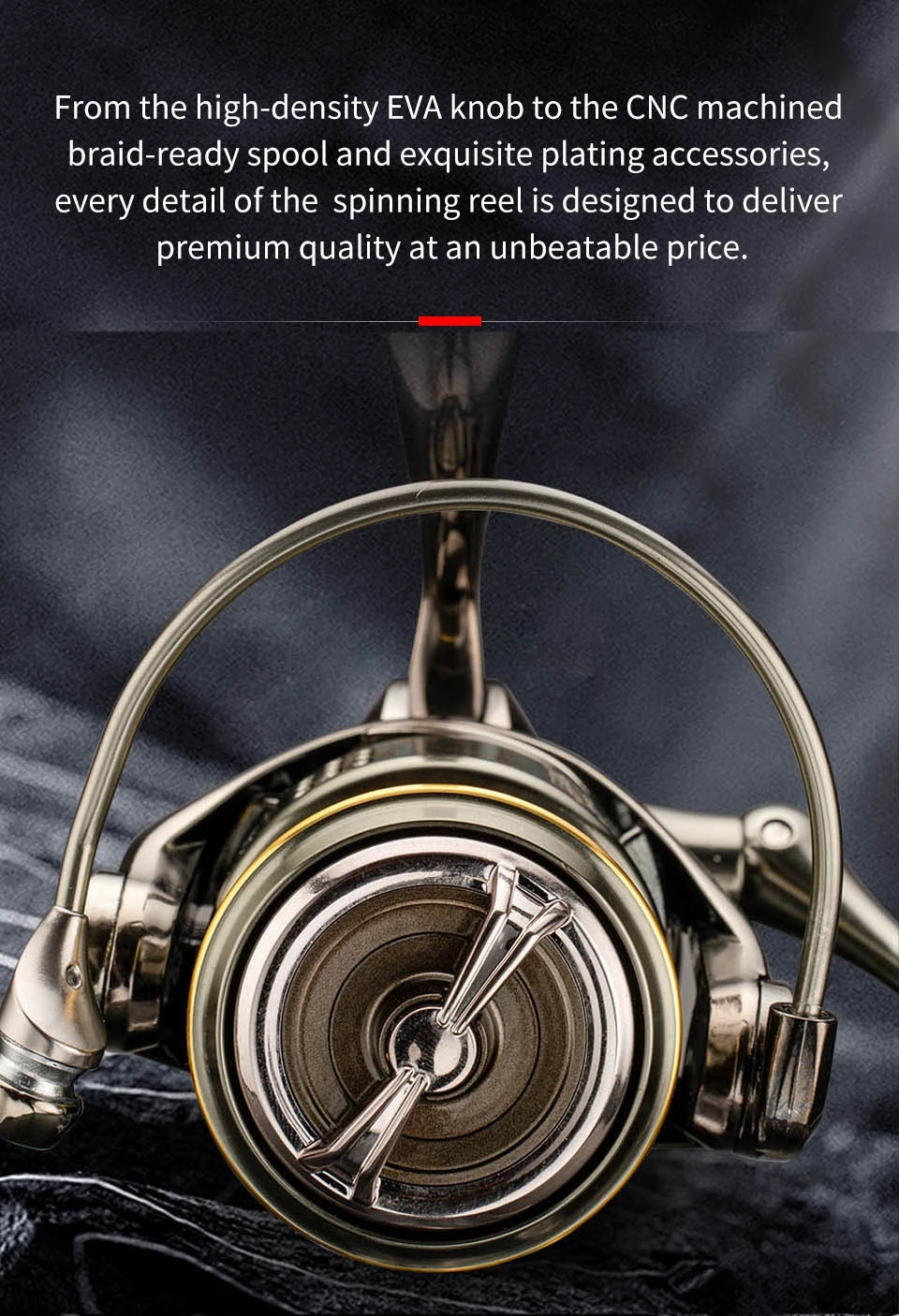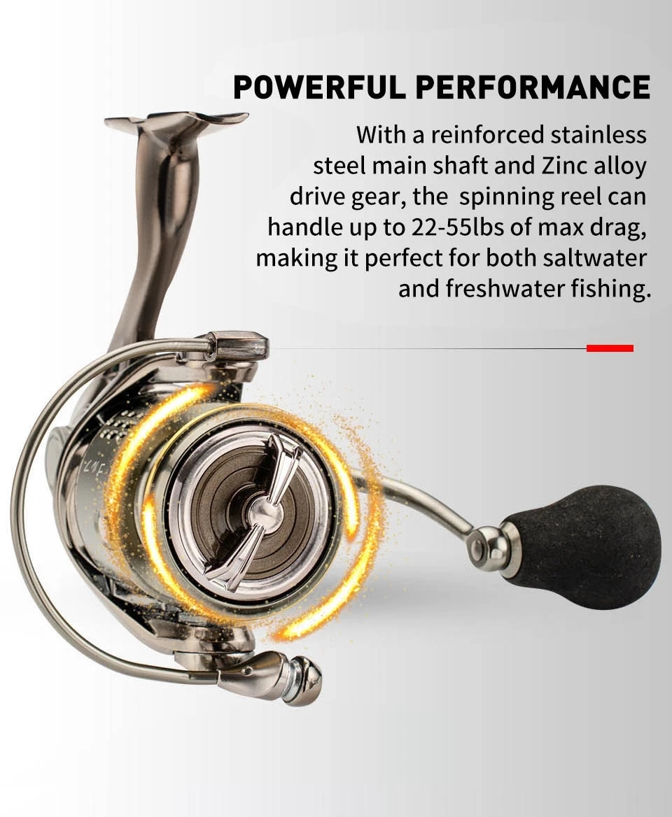 • Carrete de hilado de agua salada:Diseñado para soportar las duras condiciones de la pesca de agua salada, este carrete giratorio está construido para durar.