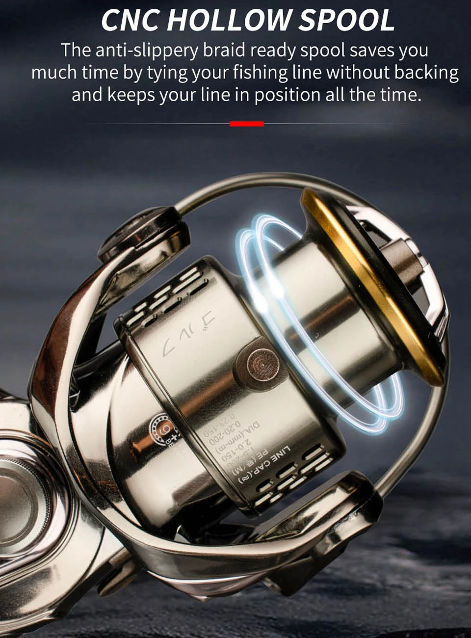 • Rueda de hilado de precarga:La rueda giratoria de precarga garantiza que su línea se distribuya uniformemente, reduciendo el riesgo de enredos y mejorando sus posibilidades de captura de peces.
