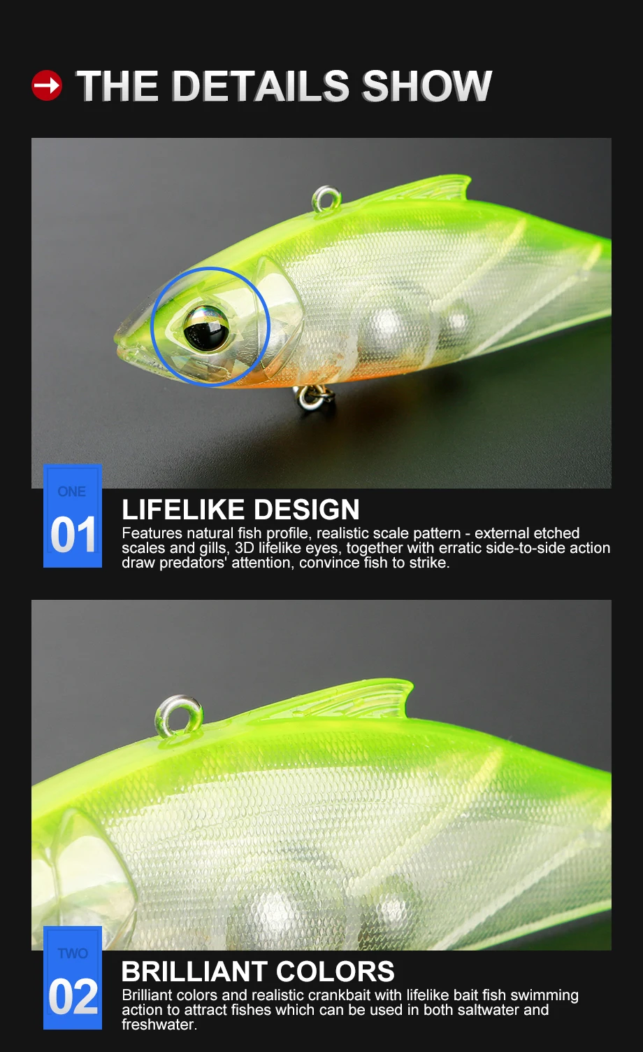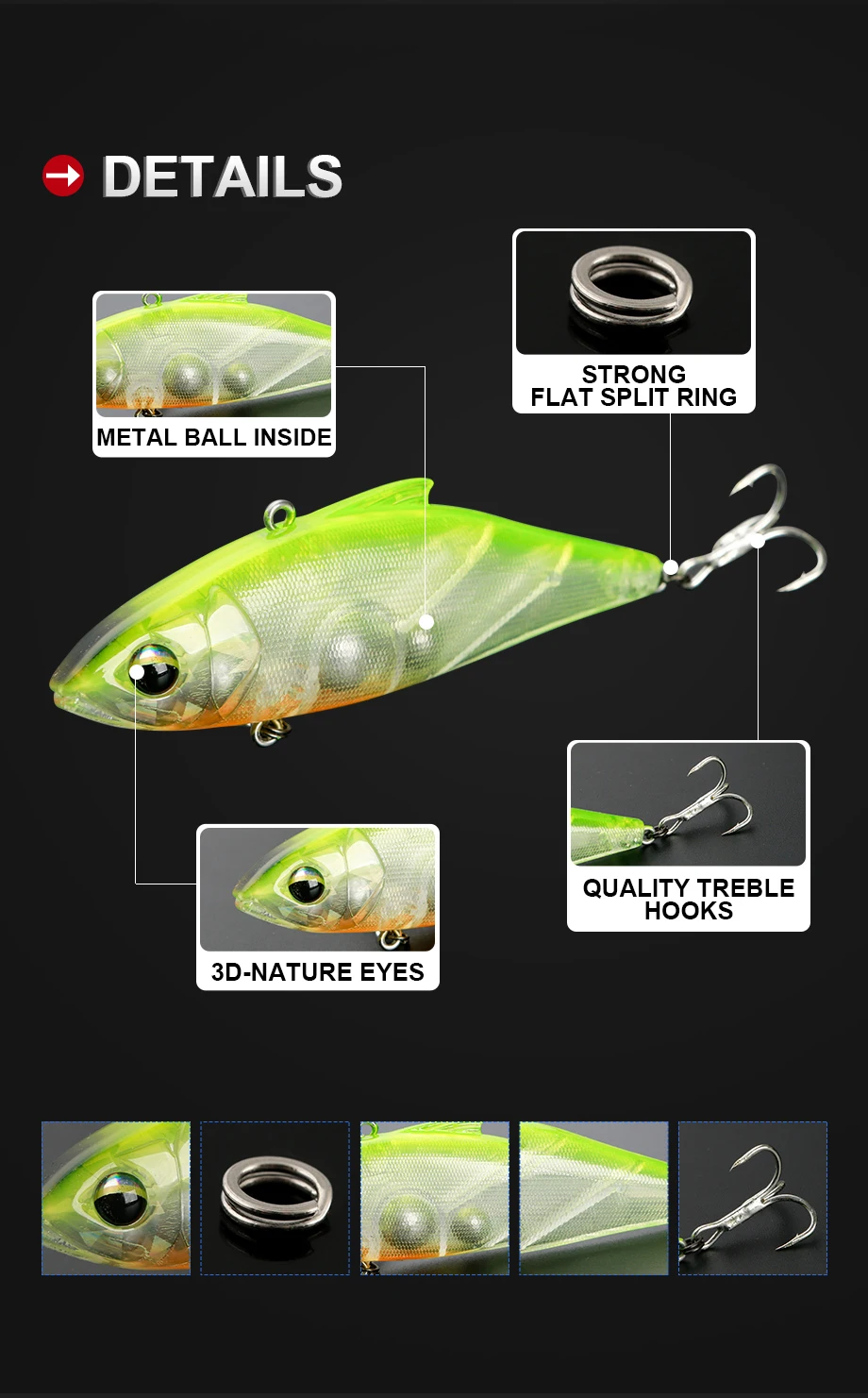 3. Bola de METAL en el interior: con bola de acero en el interior, Control de barycenter fácilmente, lanzamiento lejano. Diseño de modelo de ruido, hace que los señuelos Vibe sean más fáciles de detectar.