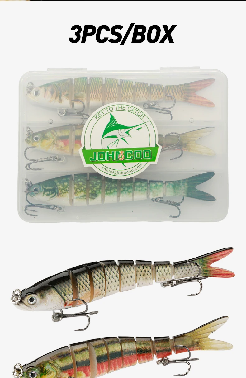 JOHNCOO-Juego de Señuelos de Pesca artificiales, cebo duro de 6 a 8 segmentos, conjunto de 3 a 12cm, 21g, wobblers hundidos