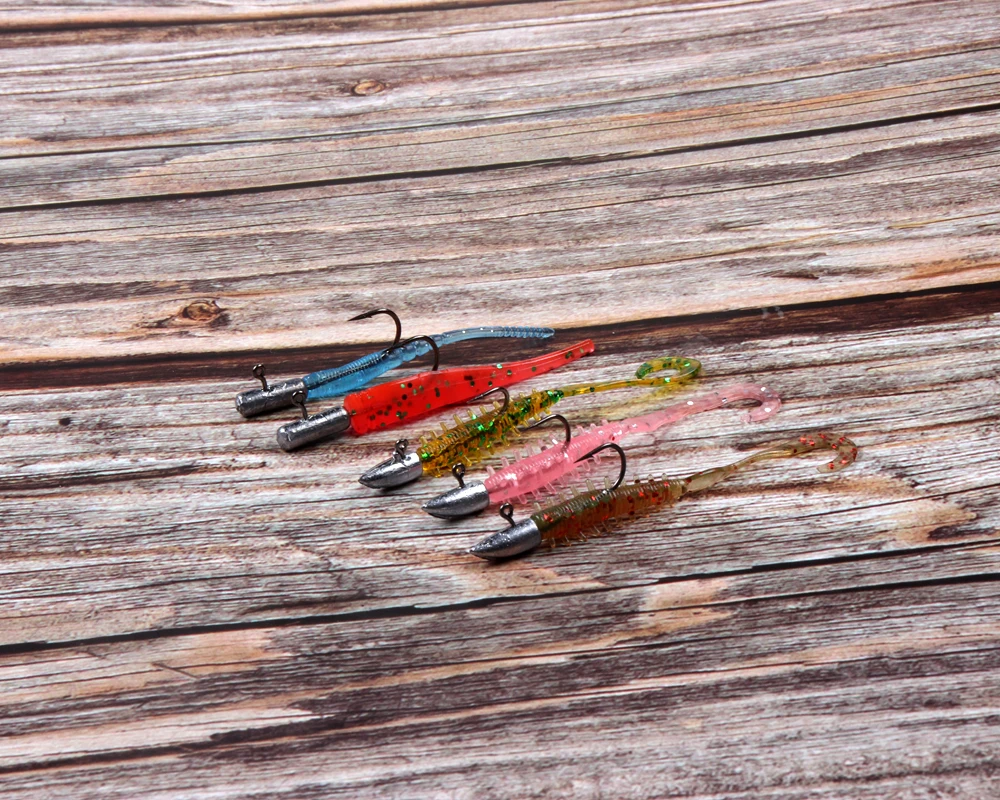 JOHNCOO Mini anzuelo con cabeza de plantilla, 20 Uds., anzuelo de pesca expuesto, anzuelo de púas, señuelo suave para trucha, anzuelo de pesca