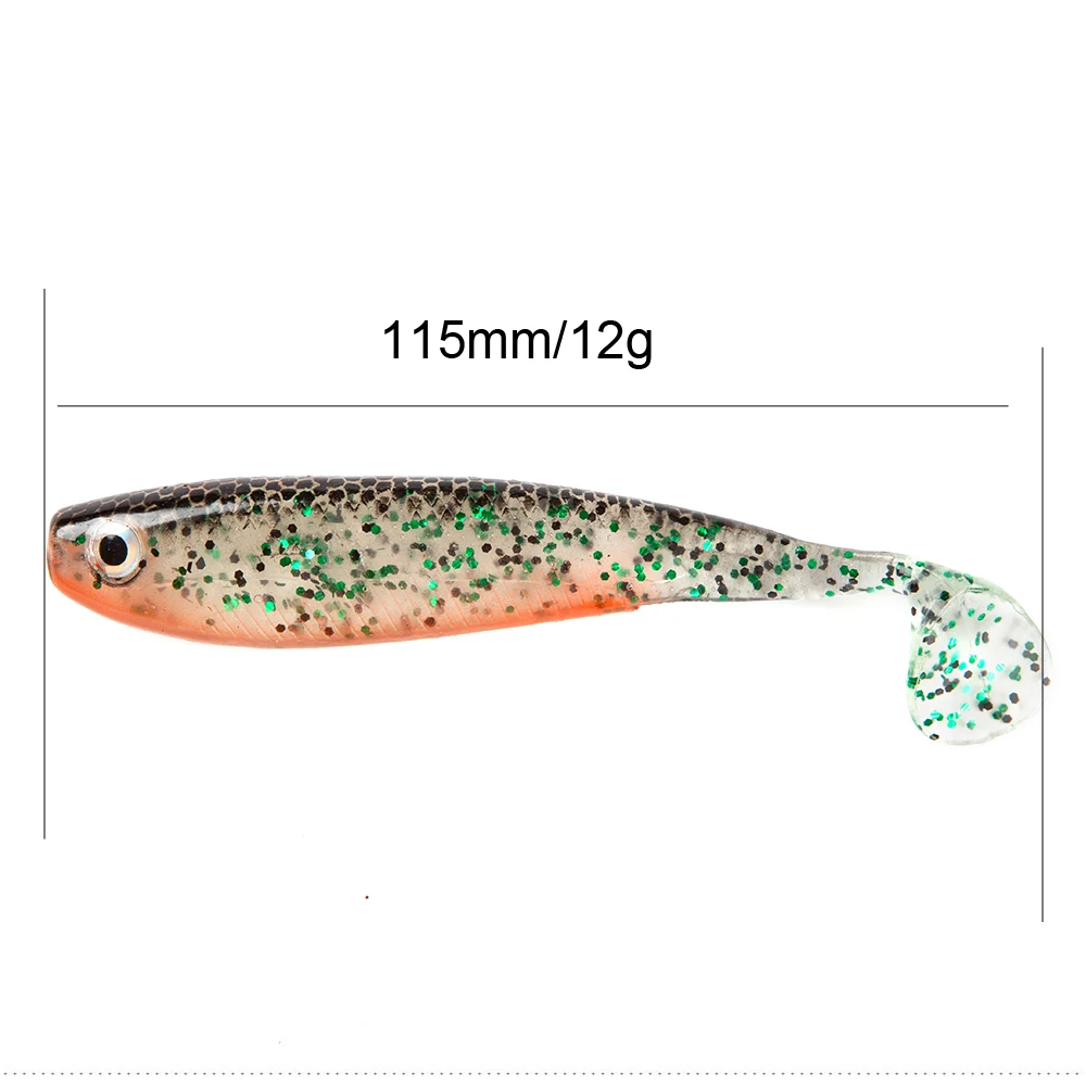 JOHNCOO, 4 Uds., señuelo de pesca, cebo de gusano suave, 115mm, 12g, cebo suave de silicona, señuelo profesional, carpa, Wobbler Artificial, señuelo de sábalo