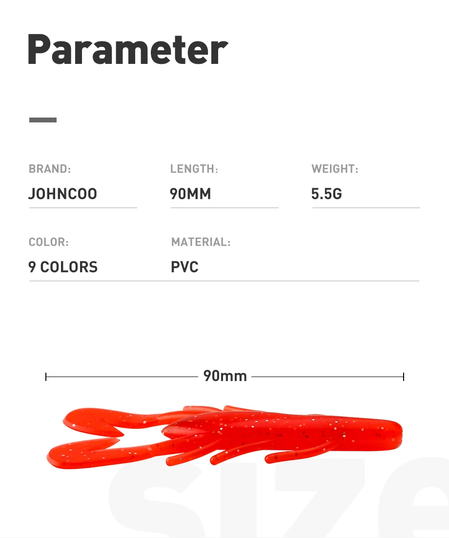 JOHNCOO-Señuelos de Pesca de 90mm, 5,5g, 8 unidades, camarones, 2 enormes, señuelos suaves, Wobblers