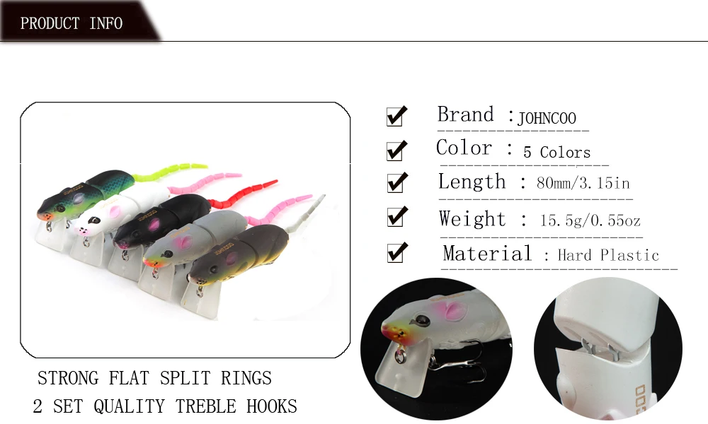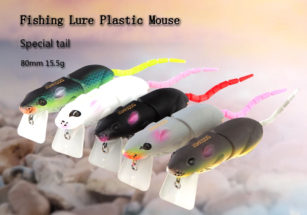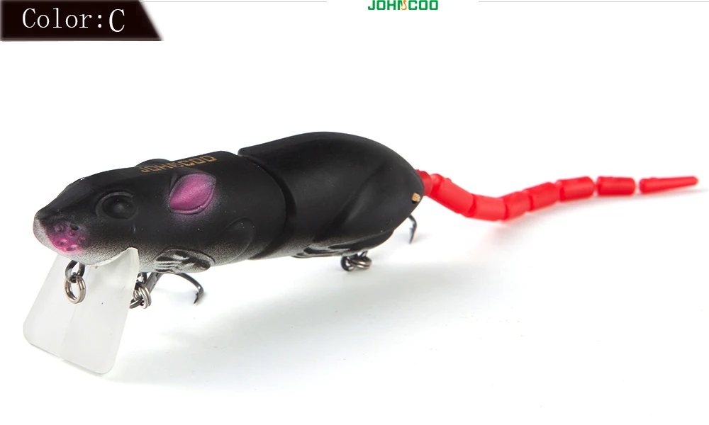 JOHNCOO 2 segmentos señuelo de pesca Artificial señuelo de ratón de plástico 80mm 15,5g Wobblers Crankbait Pike Bass Bionic Mouse Bait