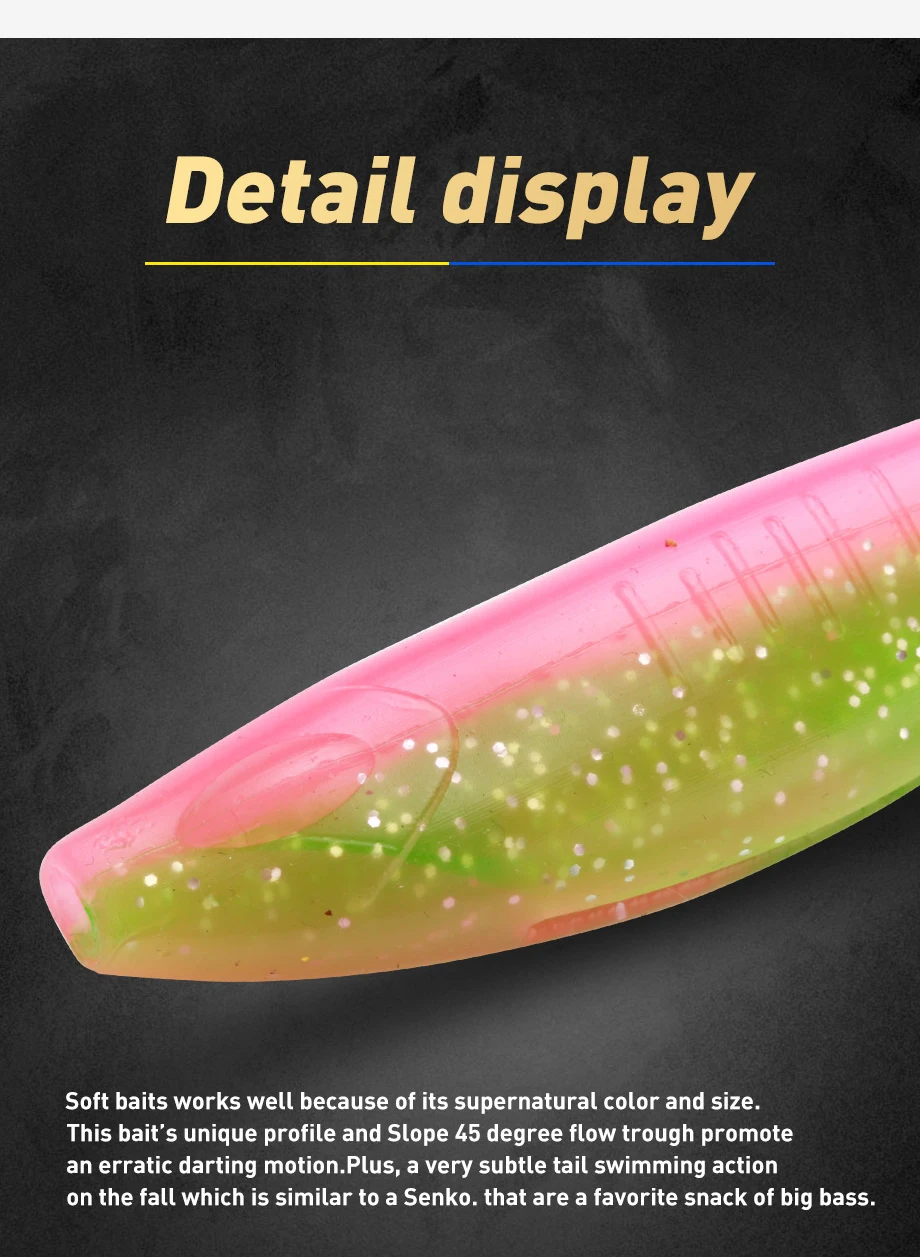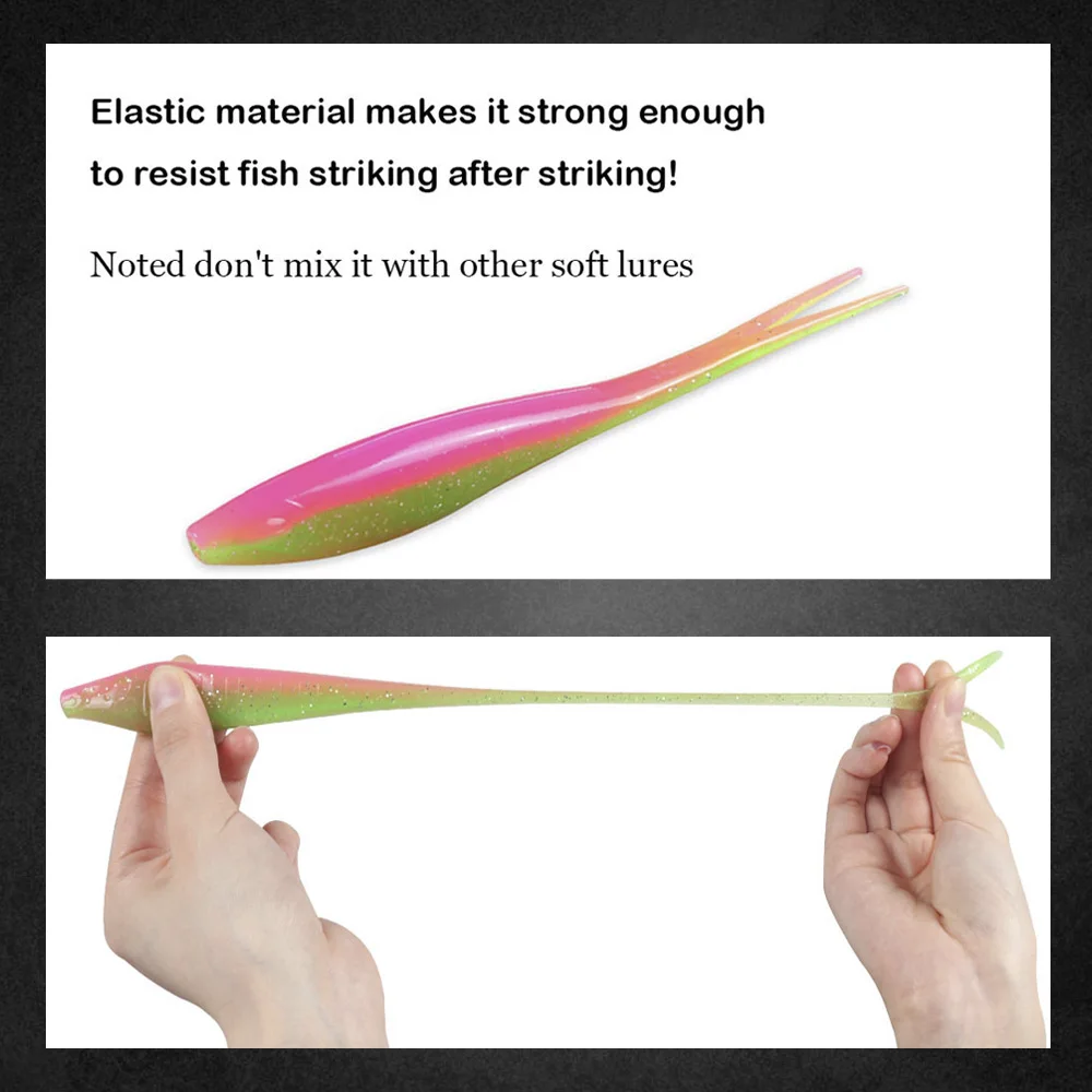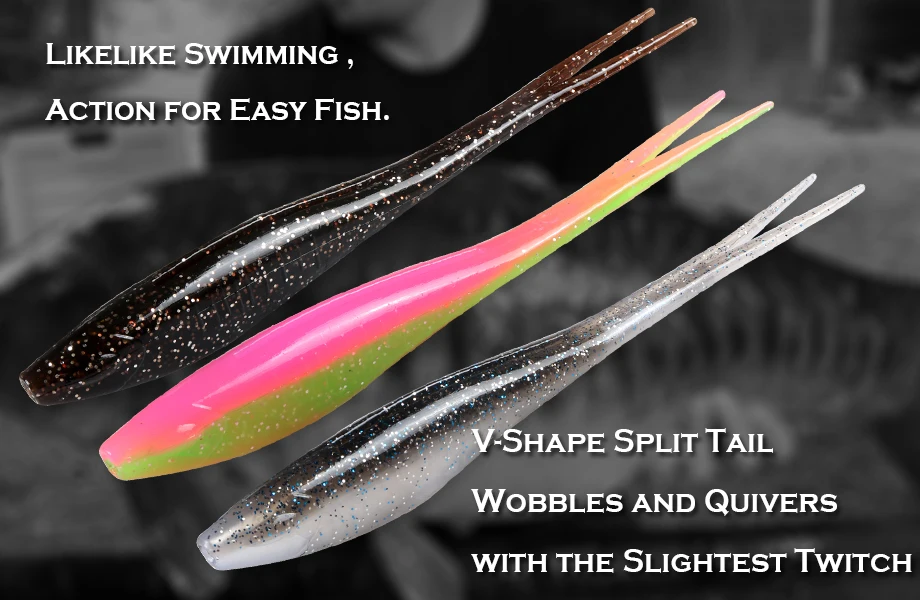 Acción de natación realista: el diseño de cola dividida con material súper suave brinda una acción de natación extremadamente atractiva para atraer peces hambrientos.Imita de cerca la apariencia y la acción de natación de un pez cebo real, exactamente lo que los peces hambrientos no pueden ignorar.