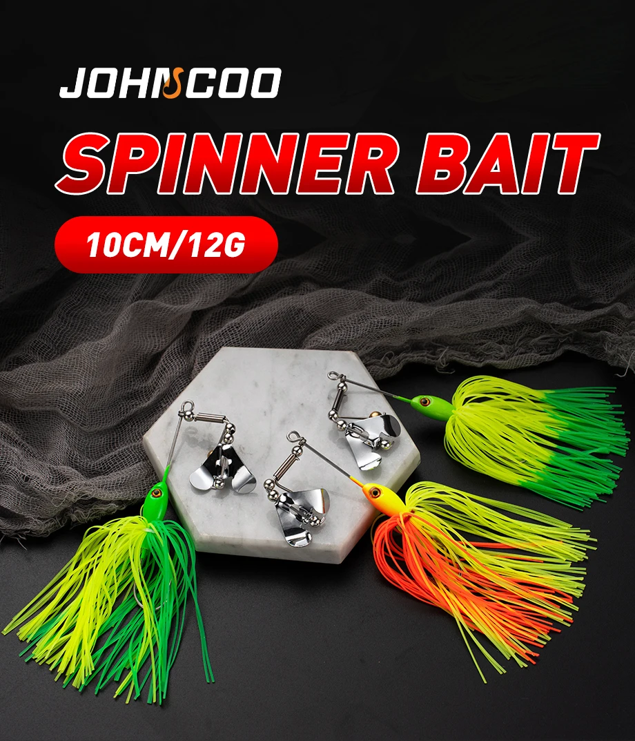 Johncoo-señuelo de pesca con cebo giratorio, plantilla de hoja de 12g y 16g, falda de goma Artificial, bailarina Spinnerbait wobbler para Lucio