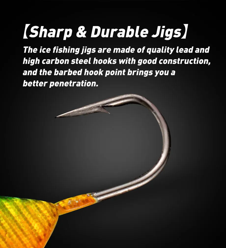 【Sharp & Strong Jigs】Estas plantillas de pesca están hechas de acero de alto carbono, duradero y afilado. El diseño de púas, le ayuda a aumentar la probabilidad de golpear su captura y evitar que los peces se escapen.