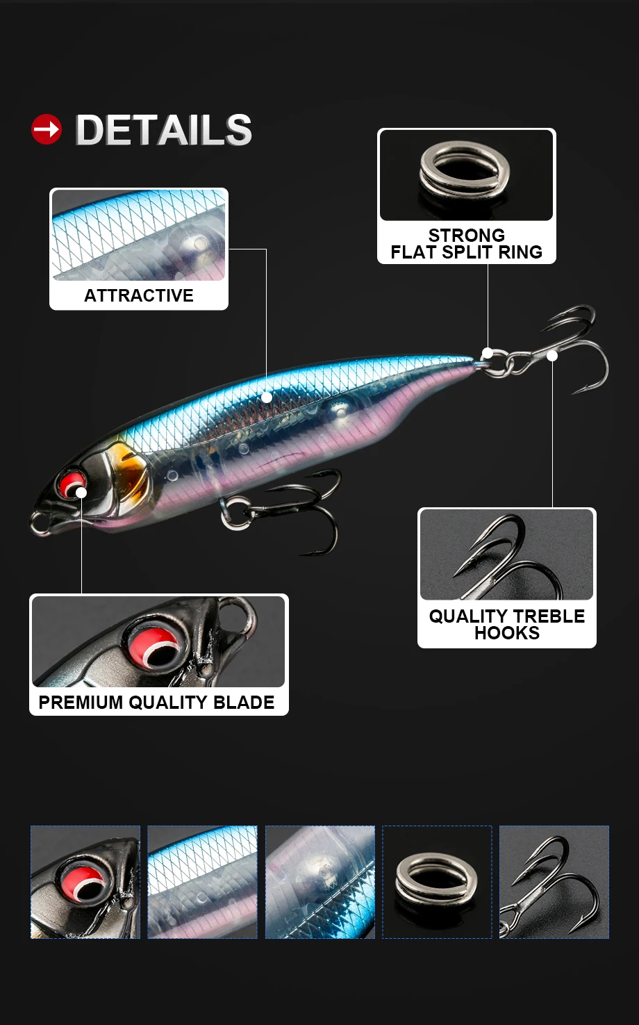 El lápiz de bajura 3D es un cebo para caminar sobre el agua con excelente equilibrio para una acción de inicio rápida alrededor de la cubierta