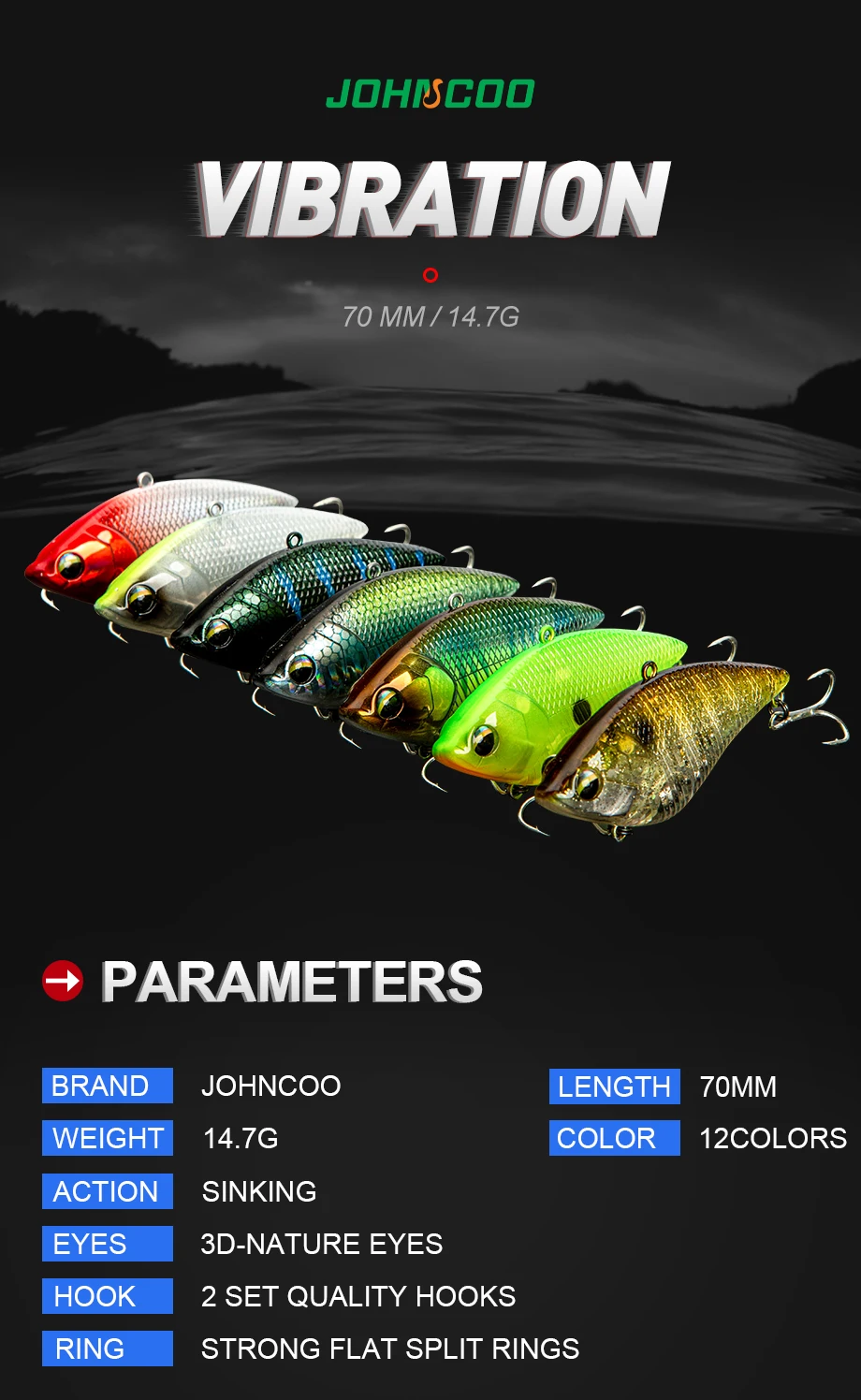 Señuelo de pesca JOHNCOO 70S con vibración de hundimiento, 14,7G, cebo artificial duro VIB, señuelo de plástico duro, aparejos de pesca de trucha en hielo para invierno