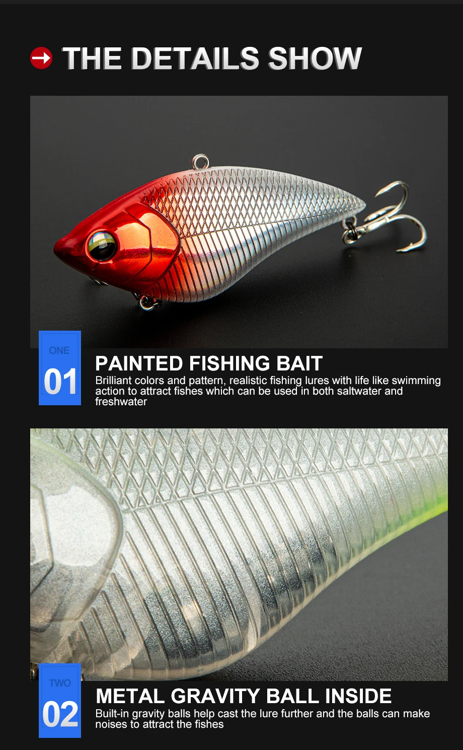 2. BOLA DE GRAVEDAD DE METAL EN EL INTERIOR: las bolas de gravedad integradas ayudan a lanzar el señuelo más lejos y las bolas pueden hacer ruidos para atraer a los peces