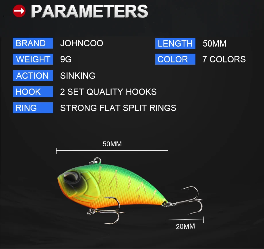 JOHNCOO señuelo de pesca con vibración hundida cebo Artificial de plástico duro Wobbler VIB señuelo Crankbait