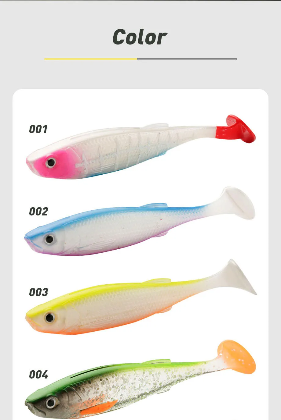 【COLA DE PALEA】 La parte sorprendente es la cola, proporciona a los cebos de natación una acción de balanceo libre y provoca que los peces muerdan mientras se mueven con el más mínimo tirón de la caña o recuperan. Brillantes de colores que los hacen más atractivos.
