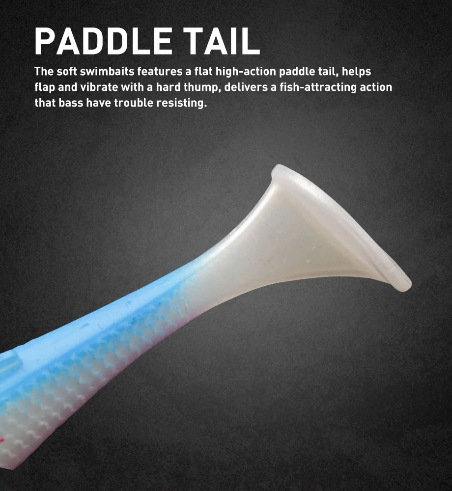 【WEEDLESS】El cebo de natación de cola de paleta está equipado con una ranura de gancho en la parte superior y otra ranura de gancho en su vientre para facilitar el aparejo y mejores juegos de ganchos, y ayuda a enterrar el punto de gancho para no engancharse con una cubierta pesada.