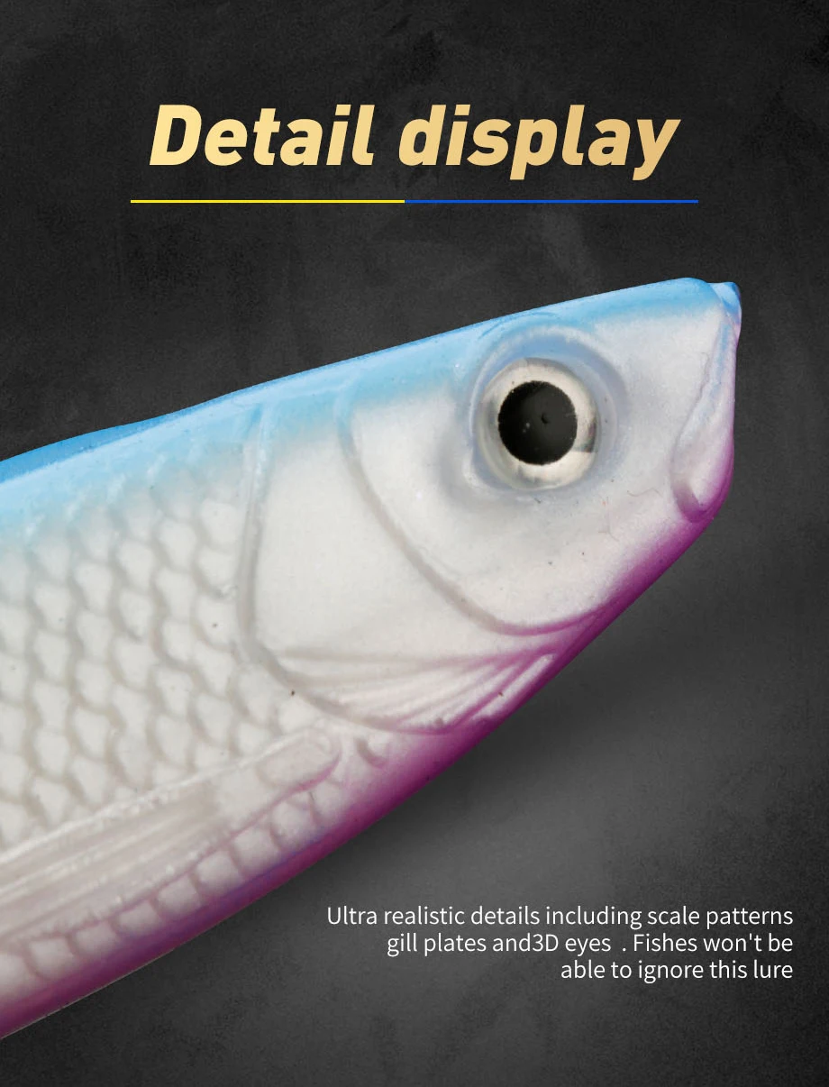 【ACEITES NATURALES】 Equipado con aceites naturales altamente concentrados extraídos de cebos vivos, ayuda a atraer peces y hacer que se mantengan más tiempo para juegos de anzuelos más positivos. El swimbait no solo se ve y se mueve como un cebo vivo, sino que también sabe a uno.