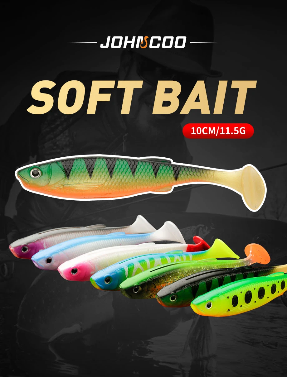JOHNCOO 3 uds recién llegado 100mm 11,5g señuelos blandos artificiales cebos señuelo de pesca Leurre Shad Swimbait T Tail Wobblers