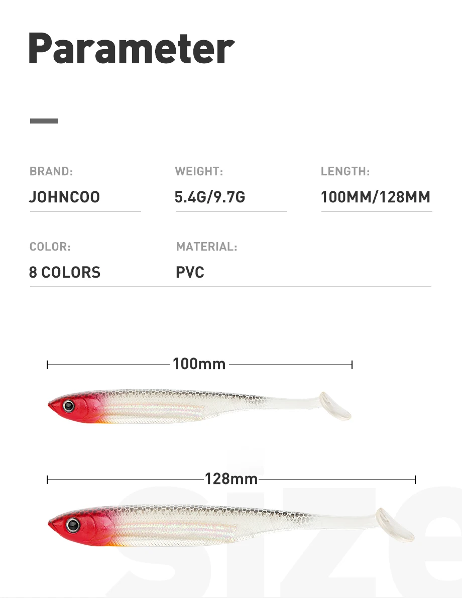 Anzuelo suave JOHNCOO Minnow Arco Iris 5,4G 9,7G T Señuelos de Pesca de cola Artificial señuelos blandos 5 piezas cebo de silicona lubina Lucio cebo