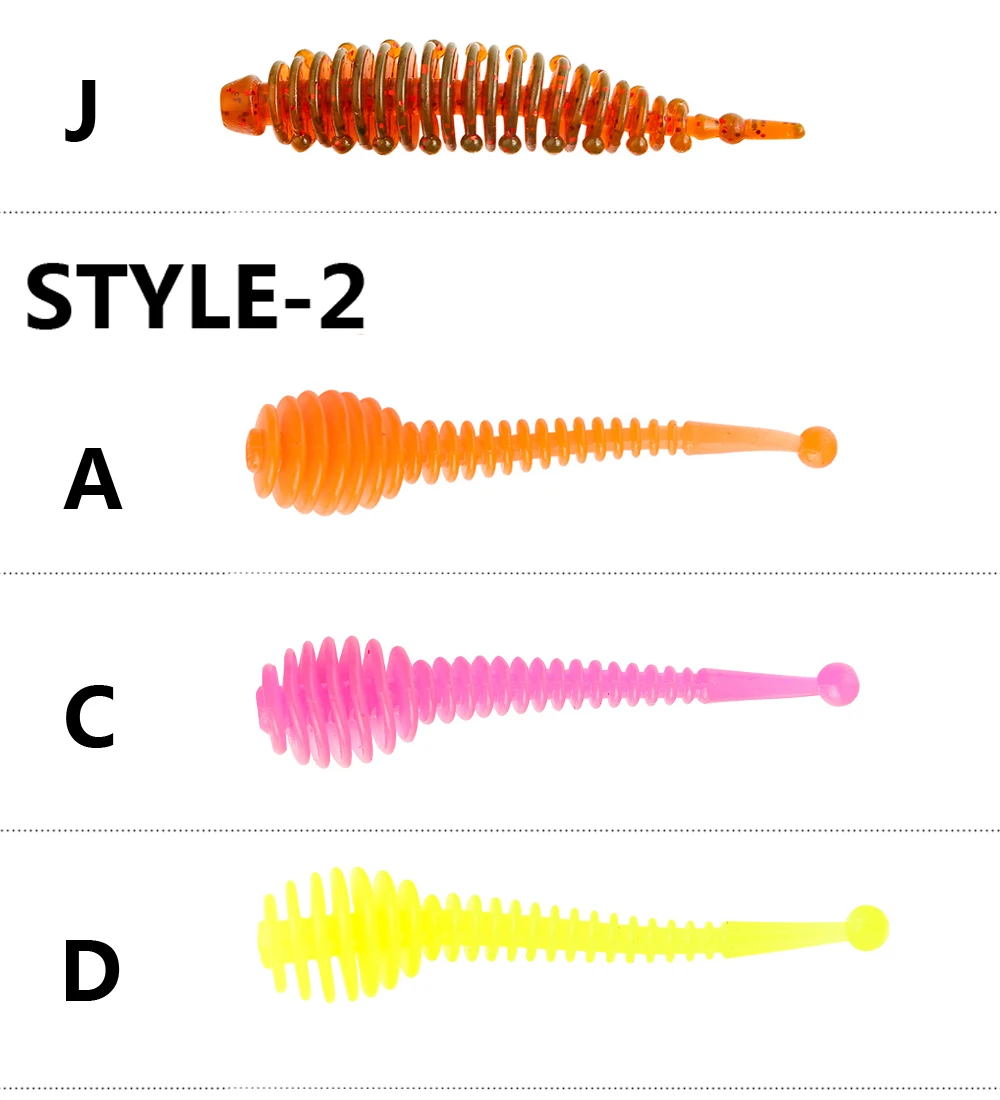 Longitud: 54mm/52mmPeso: 1,3g/0,85gColor:9 coloresCantidad: 12 piezasMaterial:TPRAcción: flotante