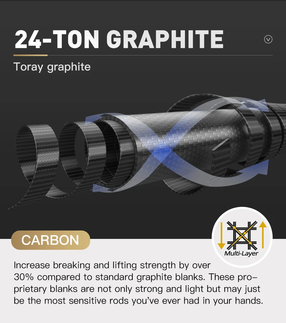 1. Los están hechos de carbono de espacios en blanco 24 toneladas y vienen en una variedad de longitudes, acciones y clasificaciones de potencia para adaptarse a una variedad de pesca