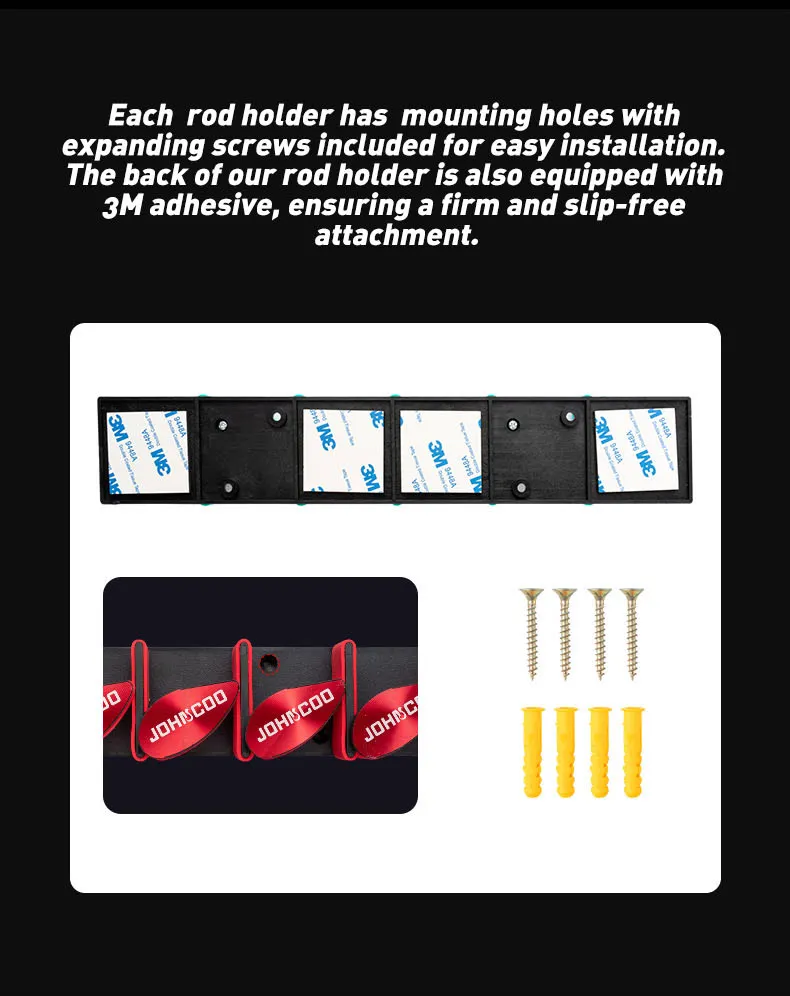 • Característica para colgar en la pared:Equipado con una función para colgar en la pared, este soporte de exhibición vertical de herramientas de caña de pescar se puede montar cómodamente en cualquier pared, liberando sus manos mientras pesca.