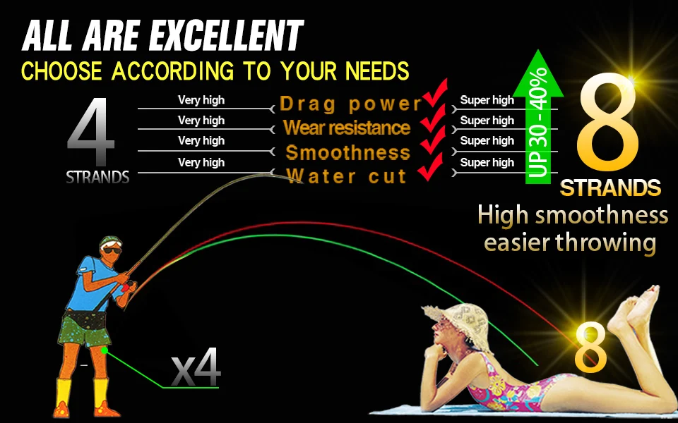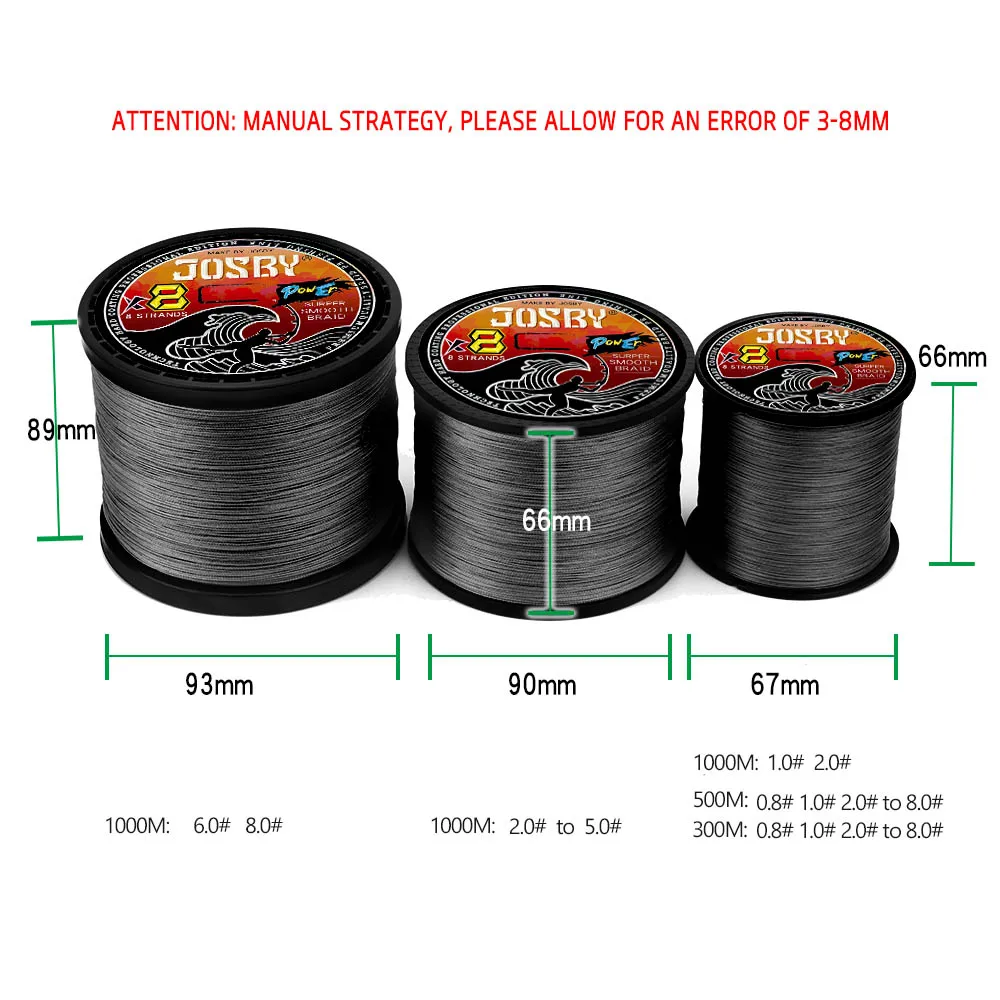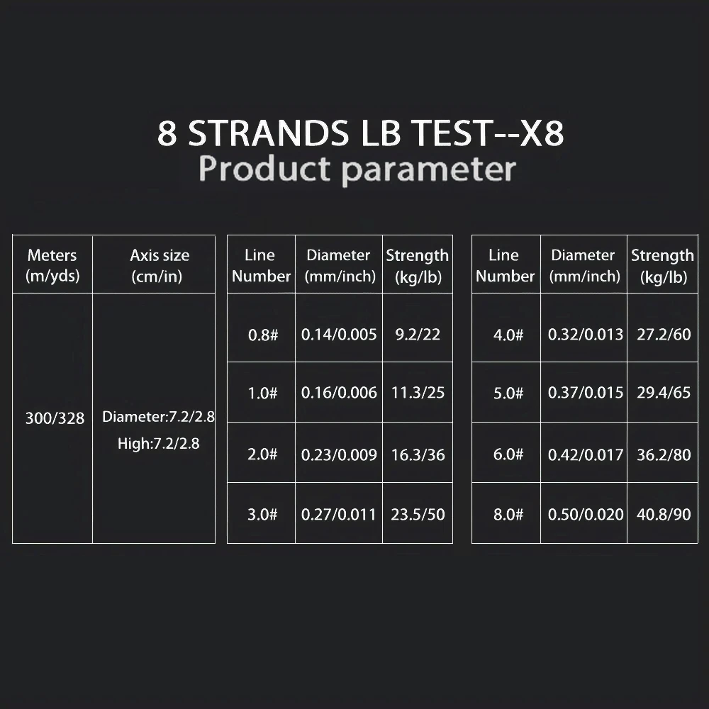 1 Línea de PE de 8 hebras, material de Japón, construcción trenzada única, hecha de fibras de PE de ultra alta resistencia.