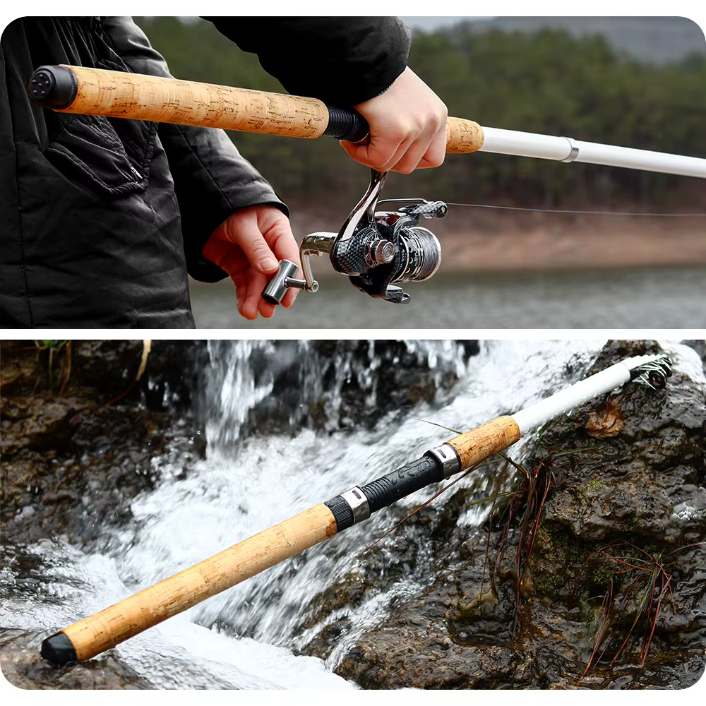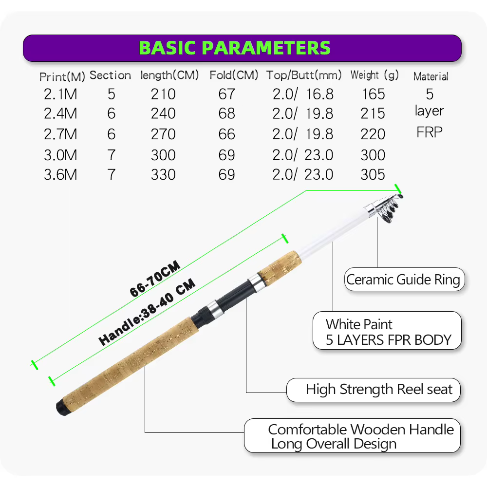 Caña de pescar telescópica portátil de 4,2 M - 2,1 M, caña de mar blanca giratoria, aparejos alimentadores de pesca para barco, 5 capas, FRP, viaje de fibra de carbono
