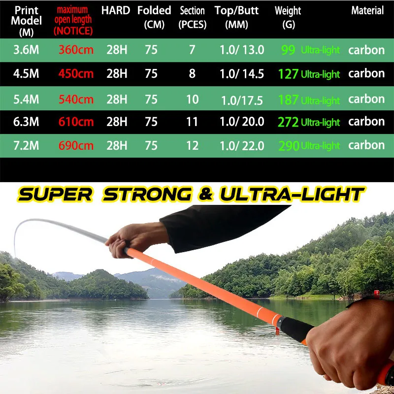 4. El cuerpo de la varilla es adecuado para tela de carbono de alta calidad, 45 tejidos cruzados. Curvatura mejorada para evitar roturas.