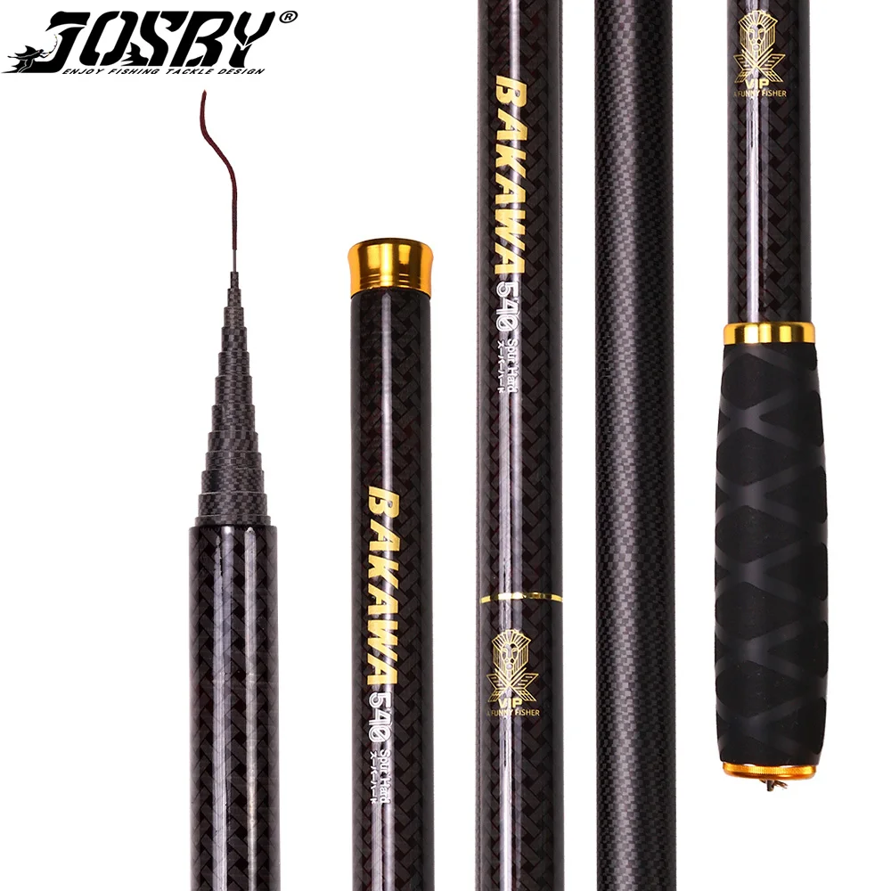JOSBY-caña de pescar telescópica de fibra de carbono, caña de pescar superdura, accesorios de agua dulce, color negro, 1,8 M, 2,7 M, 3,6 M, 4,5 M, 5,4 M