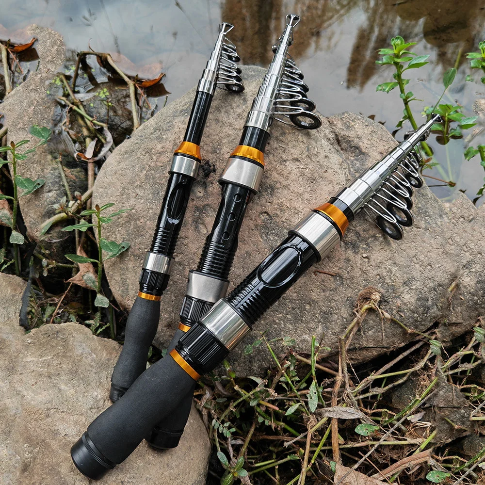 JOSBY caña de pescar telescópica giratoria mosca carpa alimentador fibra Pesca 2,3 M 2,1 M 1,5 M Mini caña de viaje asiento de carrete portátil ultra corto