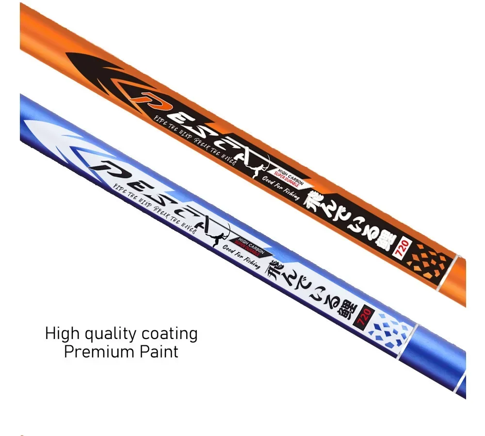(1) Cuerpo principal: Hecho de fibra de carbono de alta calidad, tejido cruzado de 45 grados y 90 grados, excelente peso de pesca.