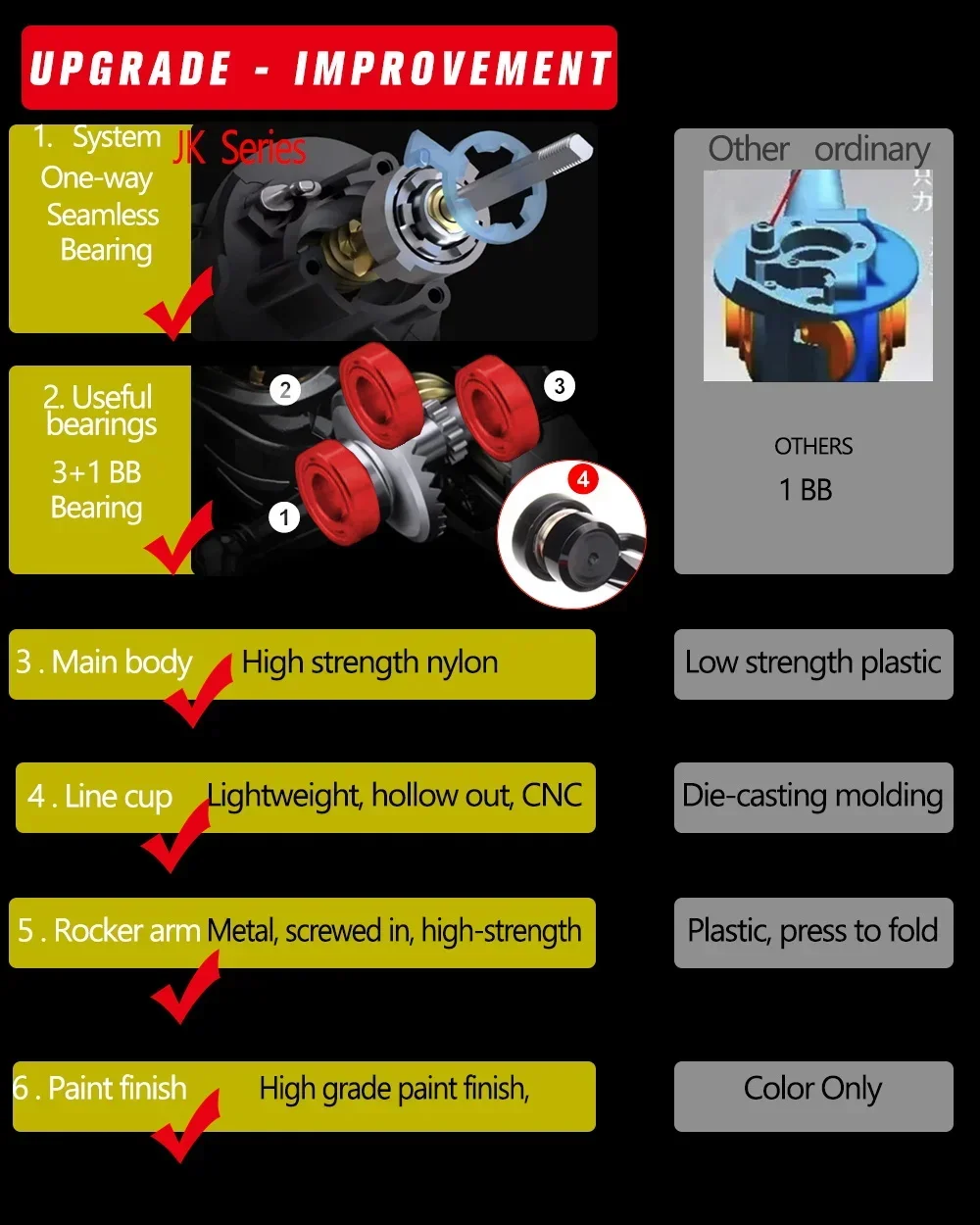 1. Actualización: rodamiento unidireccional sin costuras, mayor precisión y más suave.
