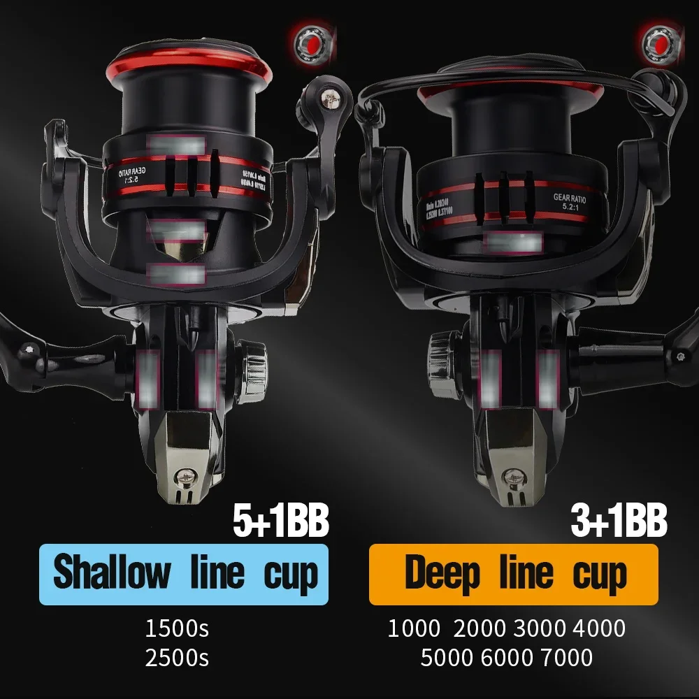 4. Las series 1000, 2000, 3000 y 4000 son buques de pesca de copa de línea profunda con rodamientos reales de 3 + 1BB y una cantidad relativamente grande de bobinado, adecuados para la pesca de especies de peces más grandes. La serie 1500S 2500S es un barco de pesca de copa poco profunda con rodamientos reales 5 + 1BB, adecuado para el lanzamiento a larga distancia, con una rotación más ligera y suave, adecuado para la pesca de especies de peces pequeños y medianos.