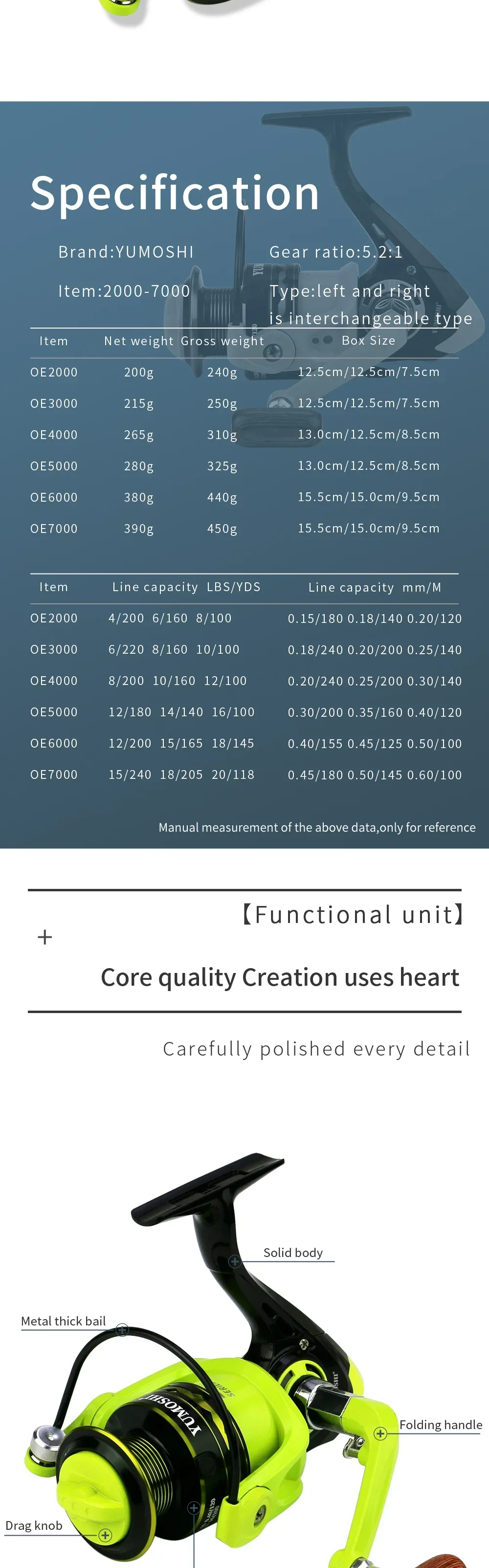JOSBY-carrete de Metal giratorio para pesca, rueda de equilibrio ligera para agua salada, accesorios de pesca, Serie 2000-7000