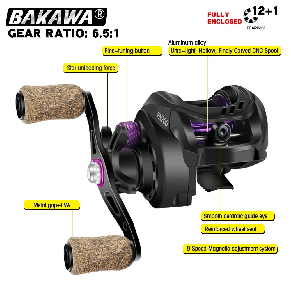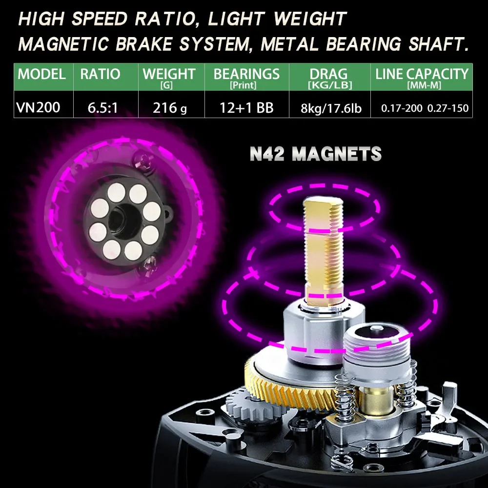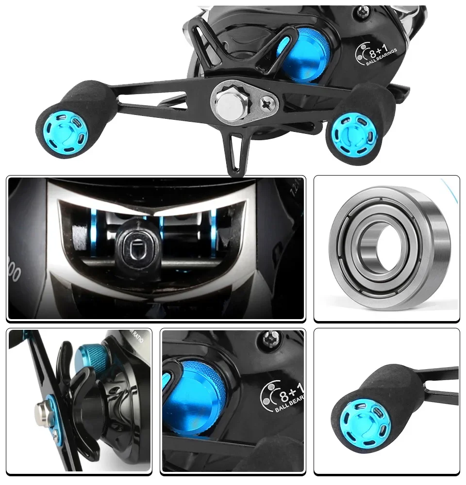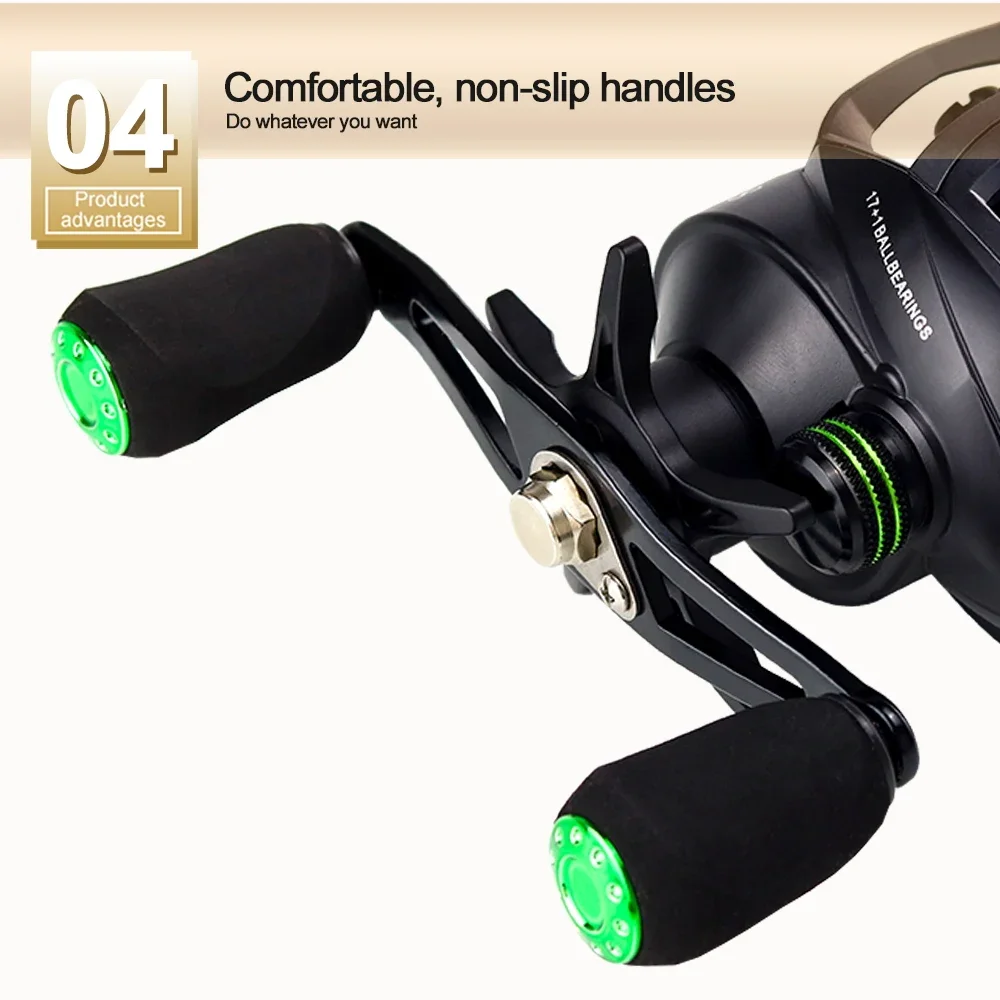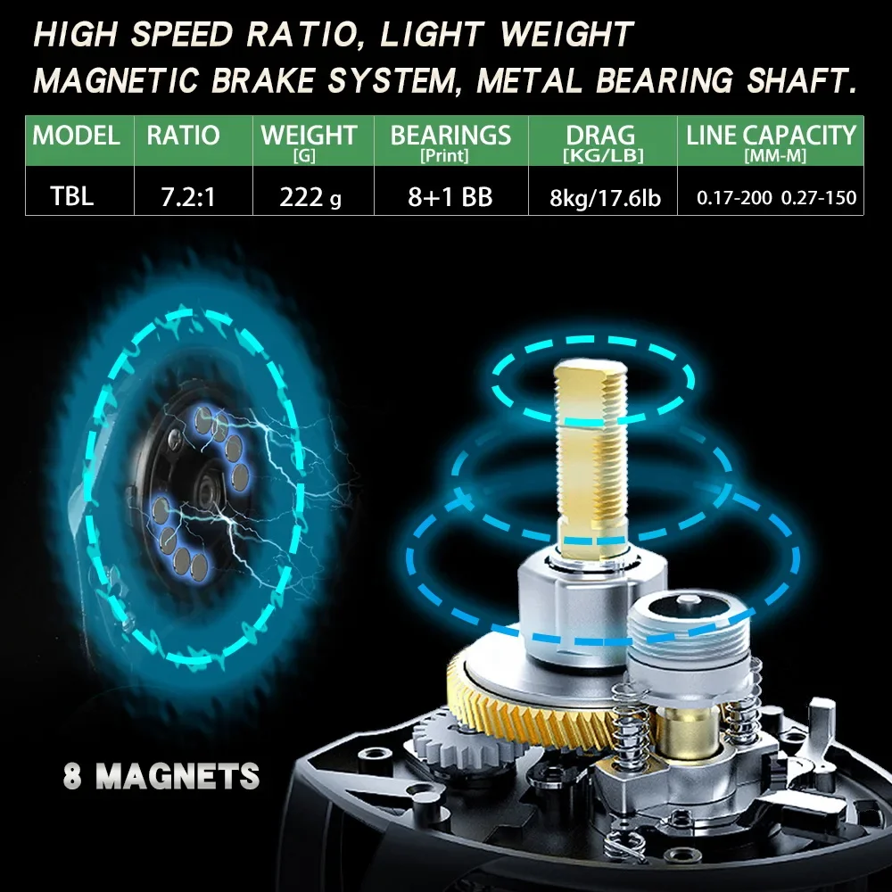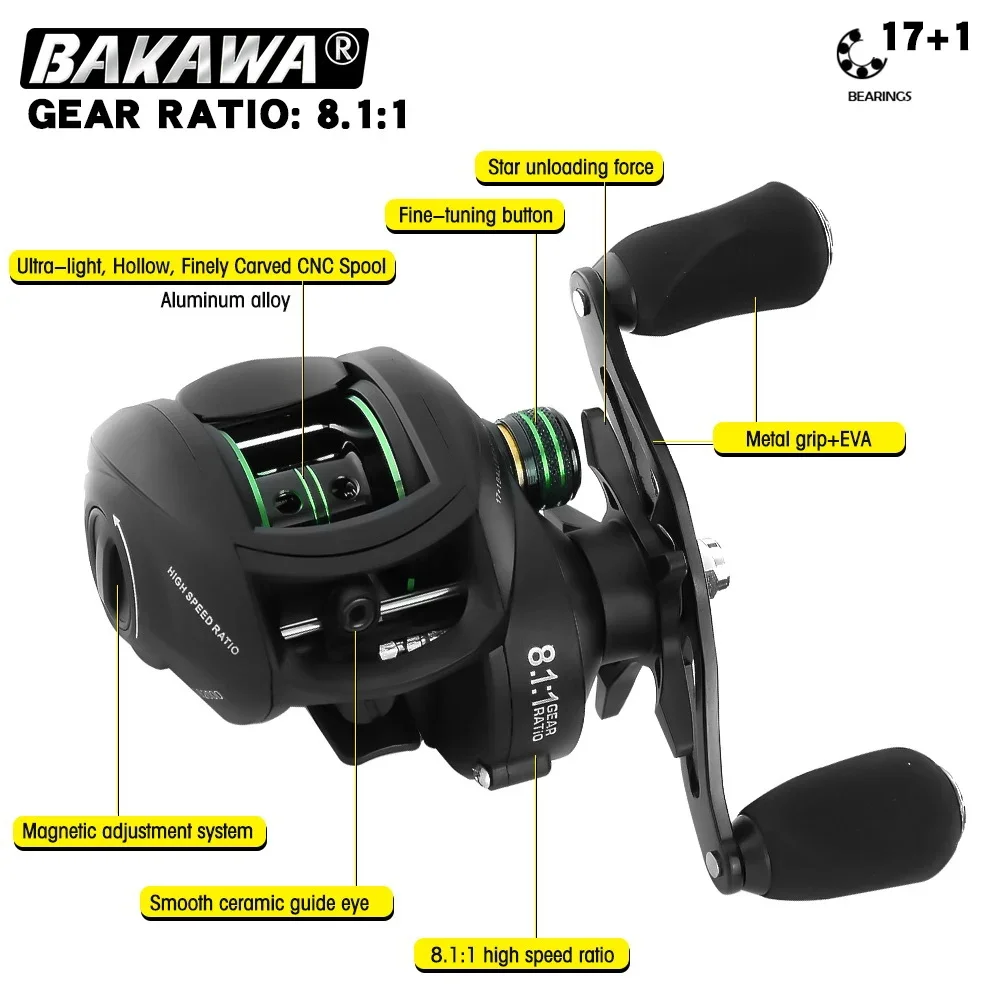 Carrete de baitcasting Serie 2000, alta velocidad, relación de engranaje 8:1:1, 17 + 1BB, sistema de freno magnético de agua dulce/salada, carrete de pesca ultraligero