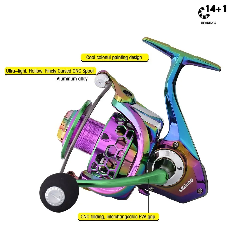 2. Tecnología de luz y potencia: el diseño de cuerpo ultrafino y el carrete de aluminio mecanizado CNC son ideales para la pesca de larga duración.