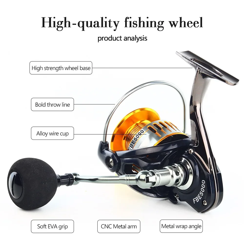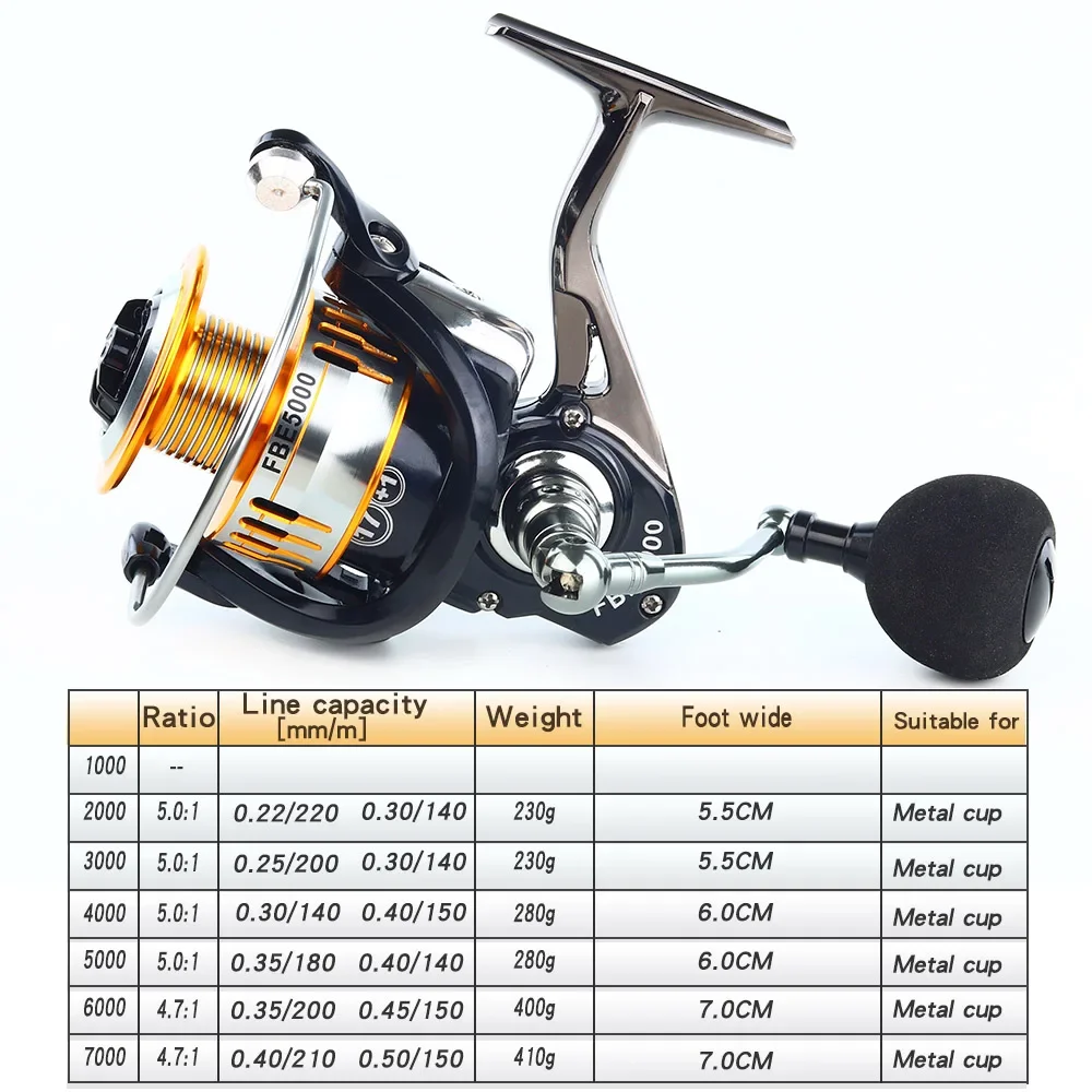 Carrete de pesca giratorio, carrete de Metal, bobina de pesca, accesorios de carpa, bobina de alimentador de mar, carrete fijo para caña de agua salada 2000 ~ 7000