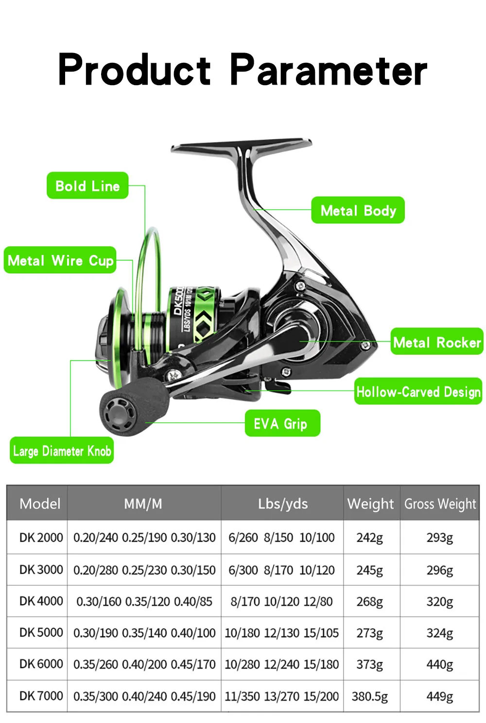BAKAWA marca DK serie 5,2: 1 carrete de pesca giratorio 28lbs Sistema de arrastre de fibra de carbono rueda giratoria bobina de pesca 2000-6000