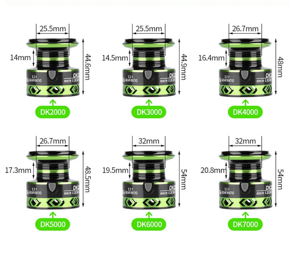 DK 5000 | Relación de engranaje: 5,2: 1 | Peso: 273g | Arrastre máximo: 10KG | Capacidad de Línea: 0,30-190 0,35-140 0,4-1000