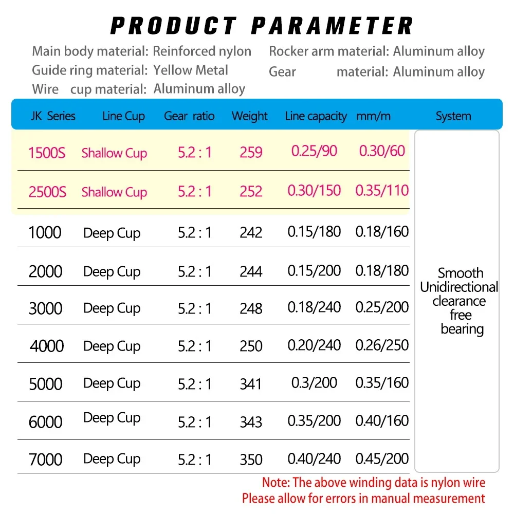 Copa de rosca profunda: 1000/2000/3000/4000/5000/6000/7000 【 3 + 1BB Rodamiento】