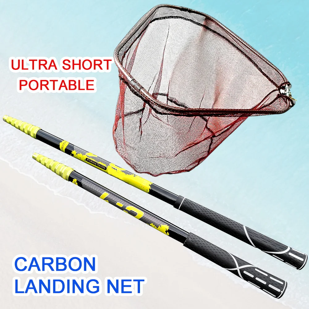 Redes de pesca de nailon de carbono, herramientas de pesca plegables, malla de rombos, profundidad de agujero, Red de inmersión de aterrizaje de nailon plegable