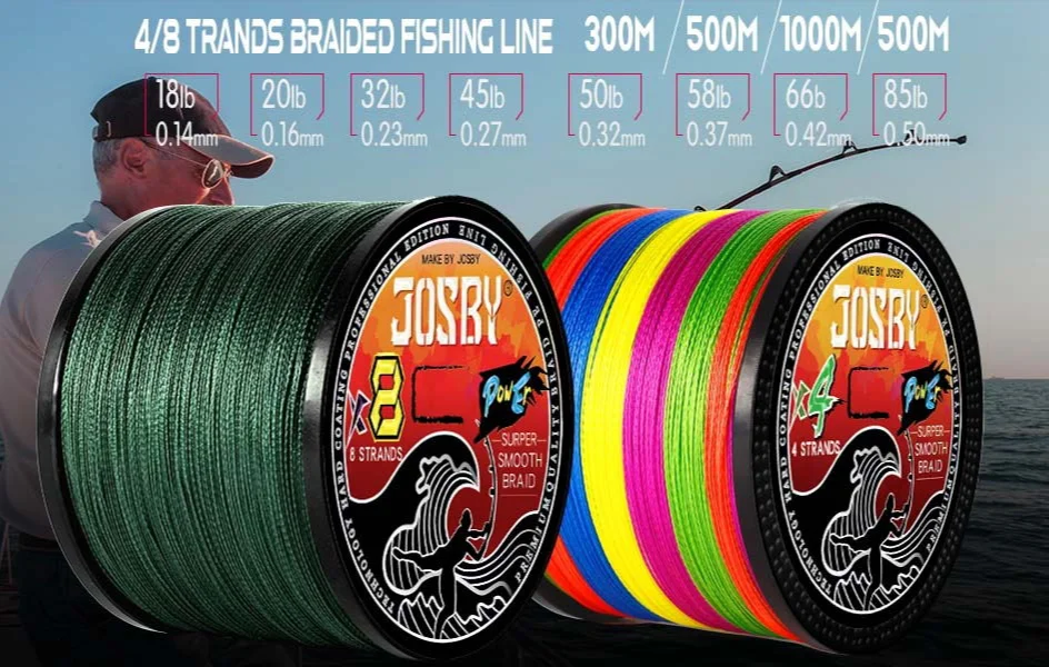 JOSBY ULTRA CASTING BRAIDThinner, Stronger, Smoother, More Durable Extremely high strength-per-diameter.Amazing thin and sensitive high pick-count forroundness and durablity.Resists "digging in" on reel. 1, Advanced X spiral braided technology for 9 weaves - the most round line.2, Improved color fastness.3, Long and fast casting - smoother than ever4, Super sensitivity - instant feel for structure and strikes5, Exceptional strength and toughness