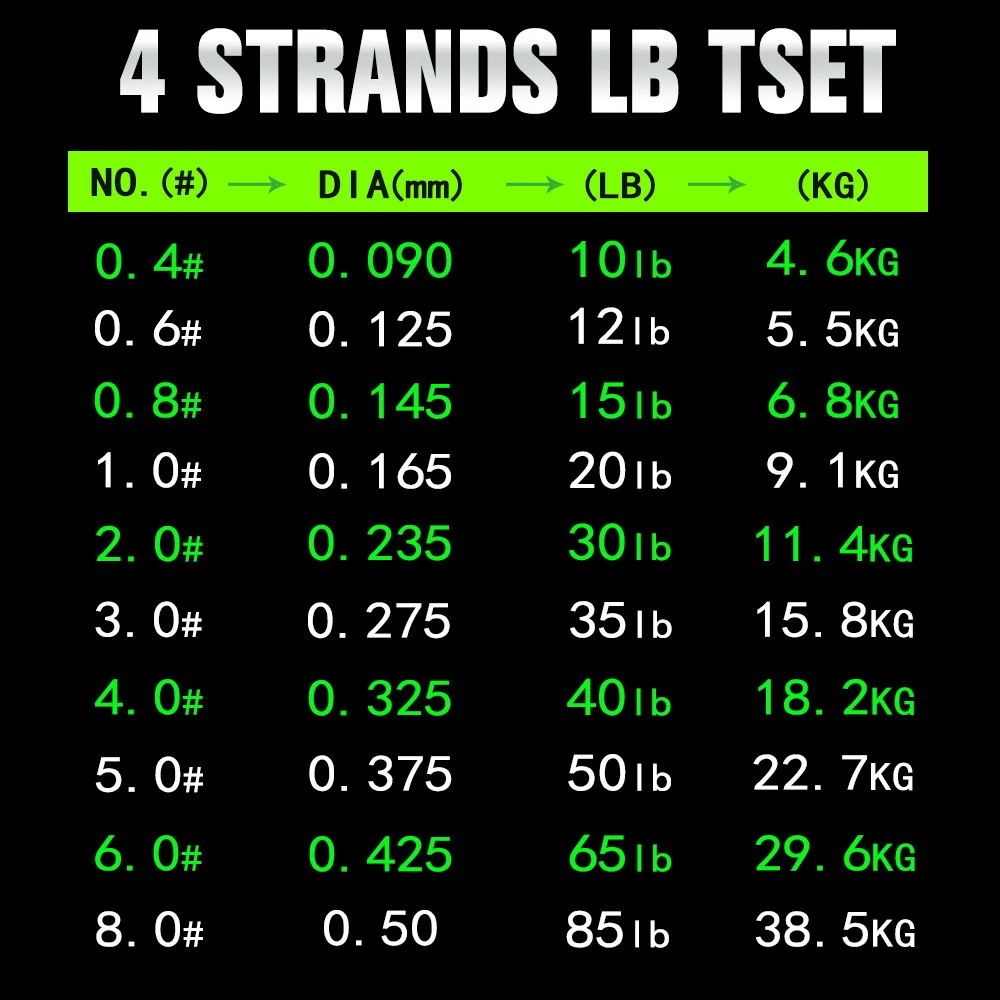 8 y 4 StrandsTest LB/KG diámetro/modelo