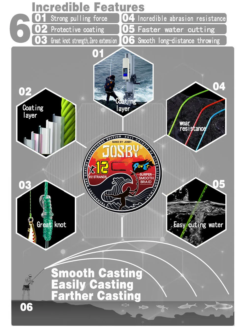 JOSBY-sedal de Pesca de PE, multifilamento de 12 hebras, 300M, 500M, alambre japonés para carpa, herramientas resistentes a la abrasión, agua salada y dulce