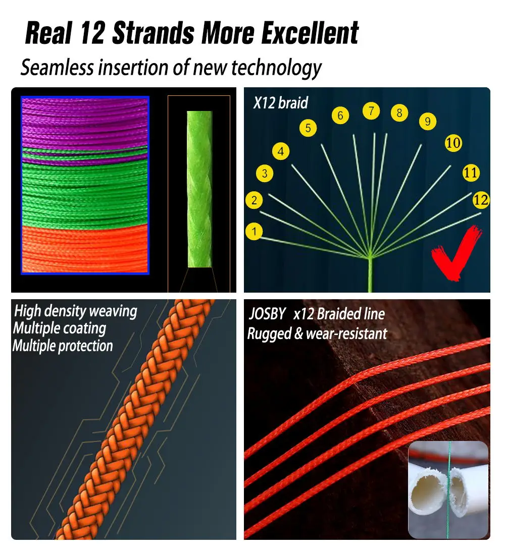 Hilos: 12 hebras (opcional) Longitud: 100m 500M 300M (opcional) Más suave y más duradero Adecuado para agua salada/agua dulce.