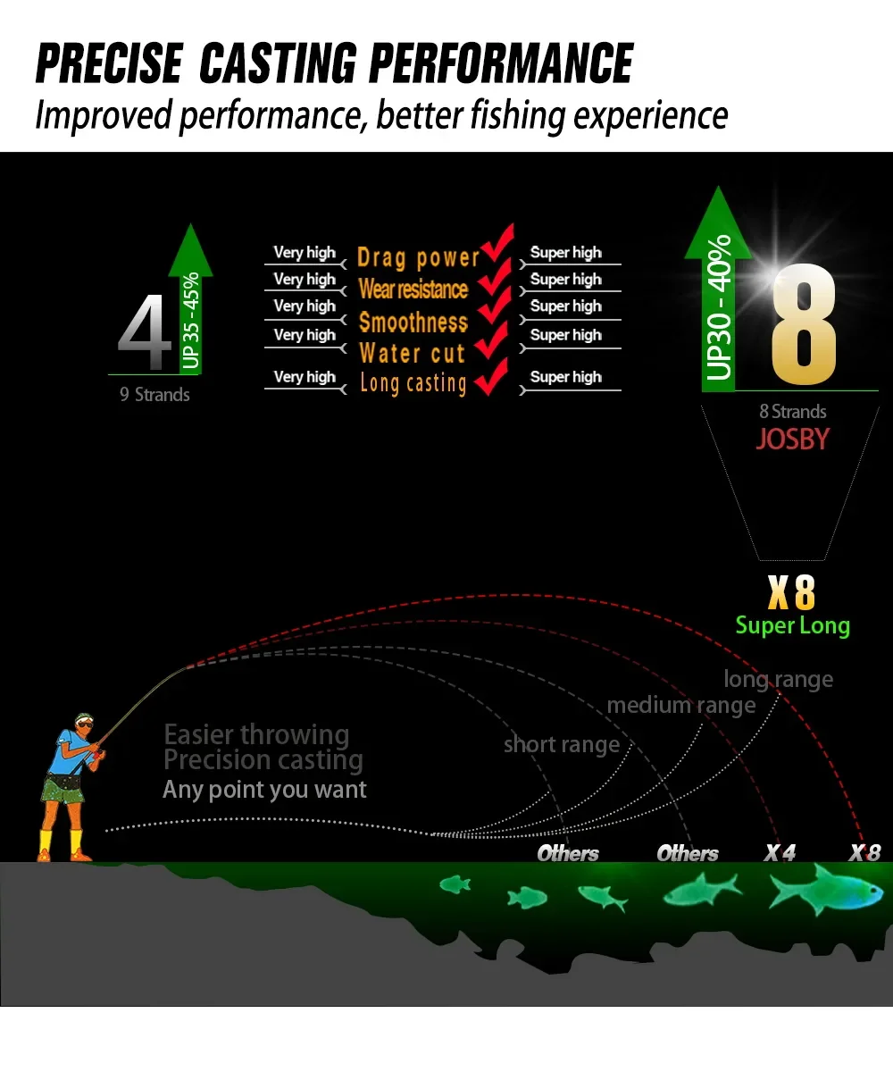 PE clásico de 8 tejidos, material japonés, fundición especial, resistencia ultraalta, mejora de experiencia8 HILOS X8 PE