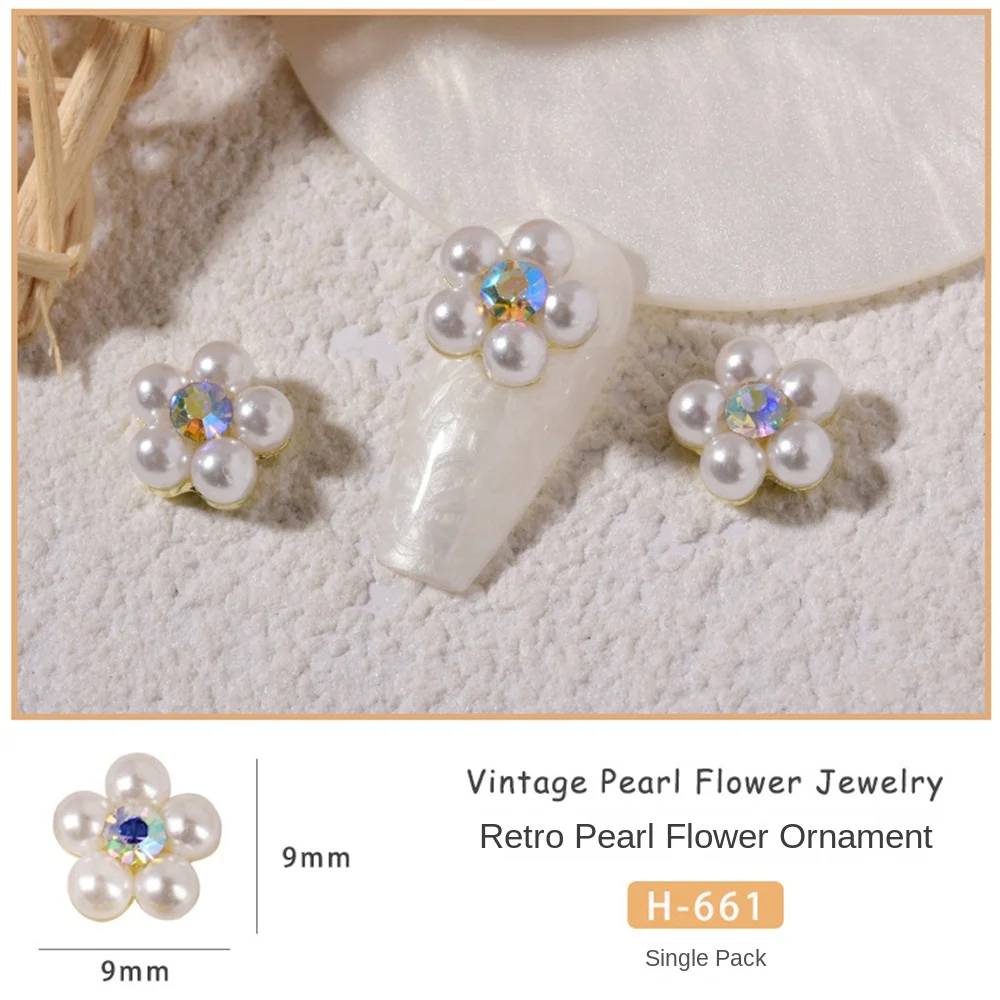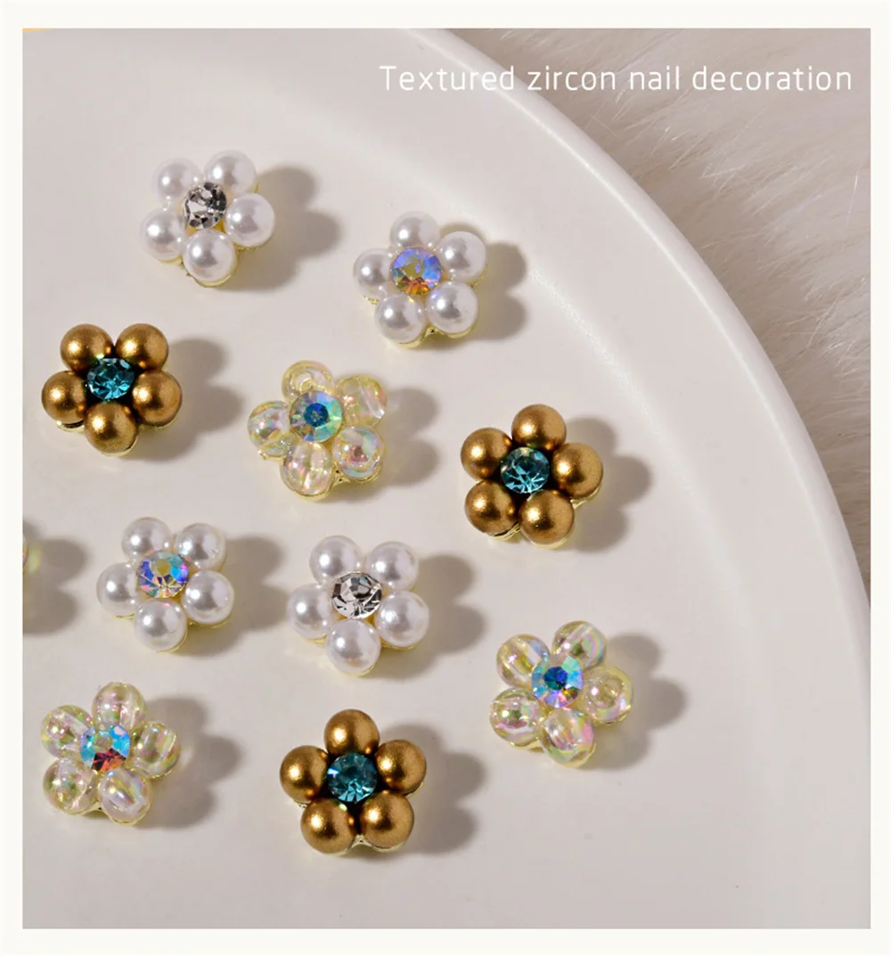 3. 【Mejora tu juego de uñas con estas joyas de aleación de moda con flores de perlas】Estas versátiles decoraciones para uñas harán que tus uñas destaquen en cualquier ocasión.
