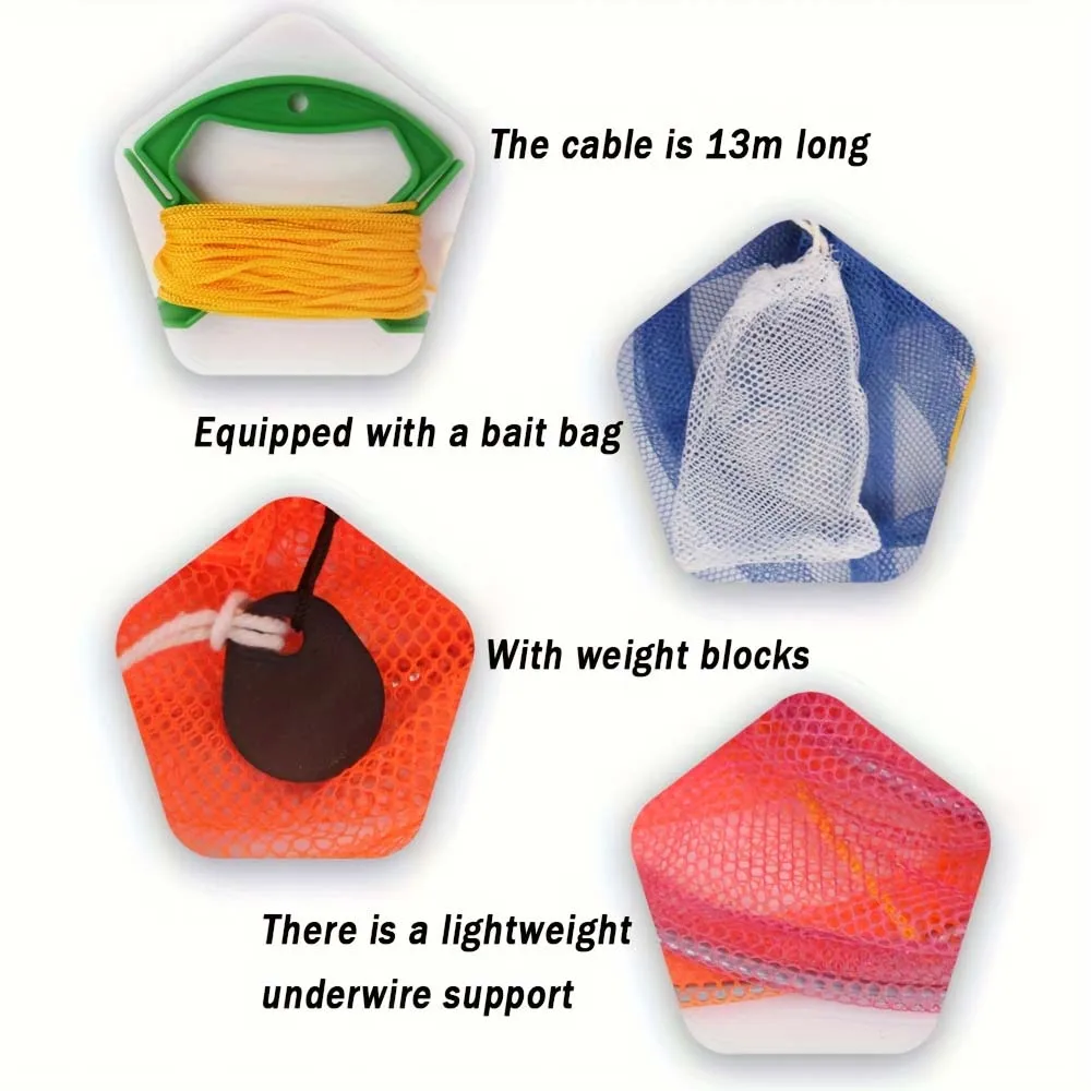 * ¡Simplemente colóquelo en la bolsa de cebo de red y espere a que vengan los cangrejos y obtenga el cebo! ¡Perfecto para la pesca de cangrejo en la playa y en muelle! Ideales para pescadores principiantes, ya que estas redes están diseñadas para capturar cangrejos, camarones y peces más pequeños.