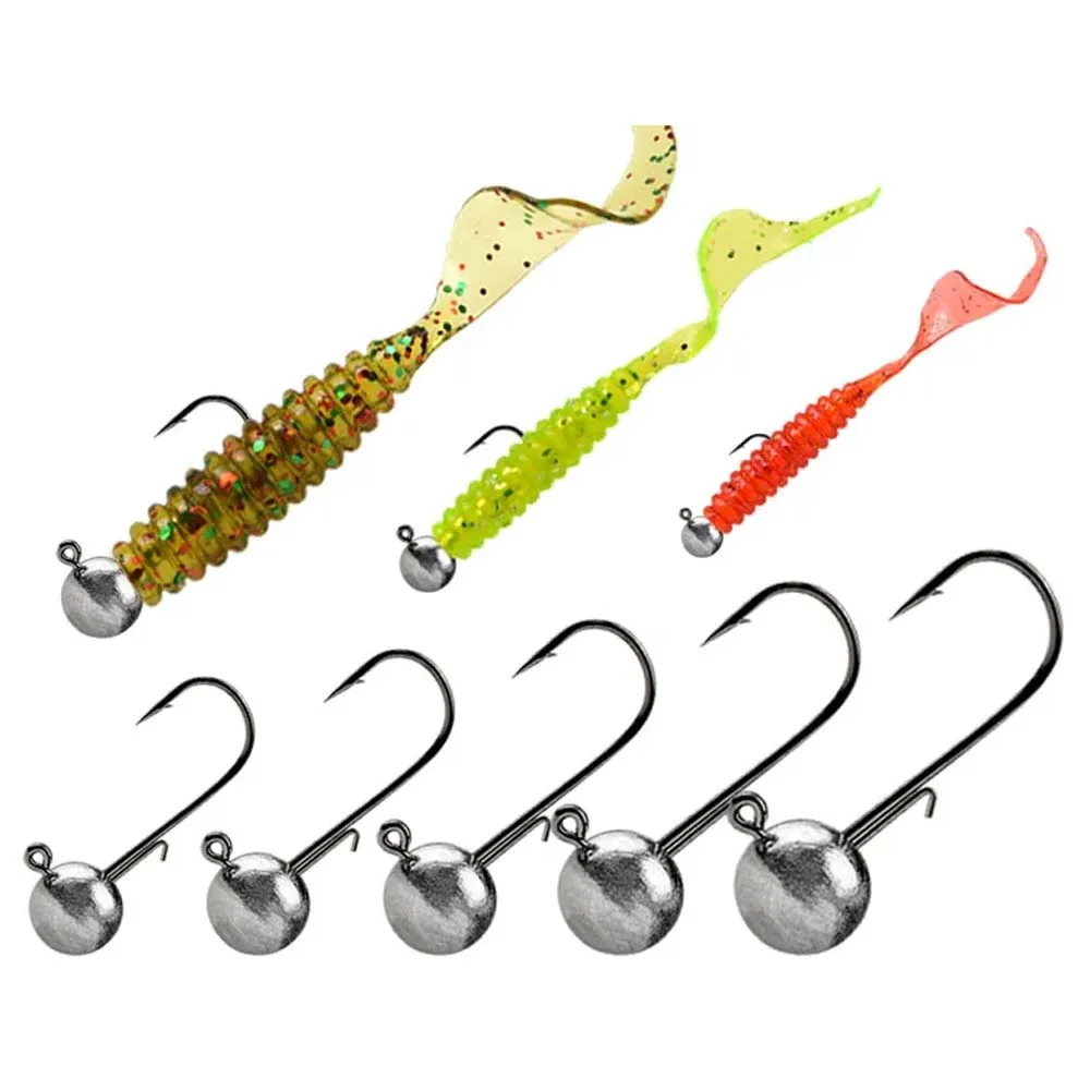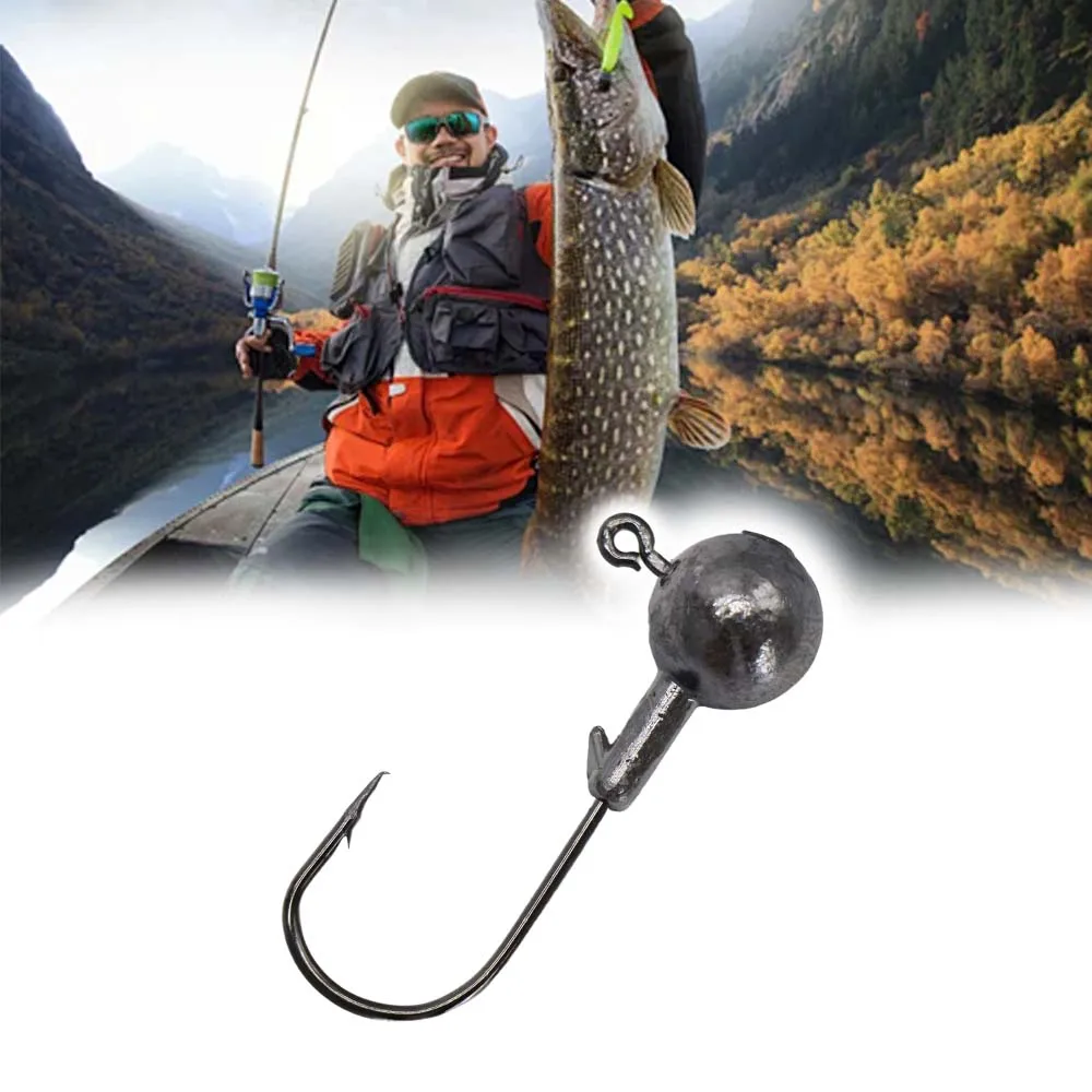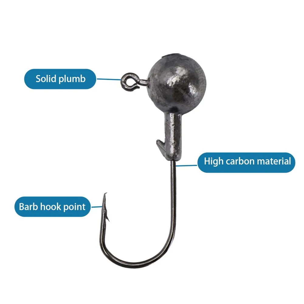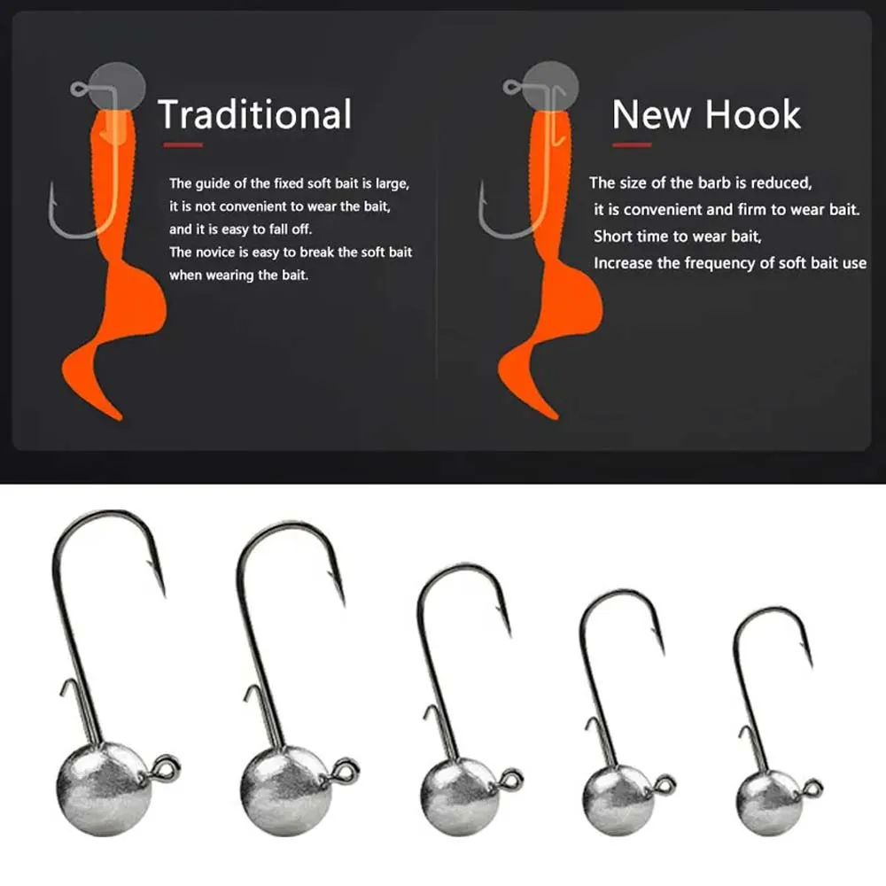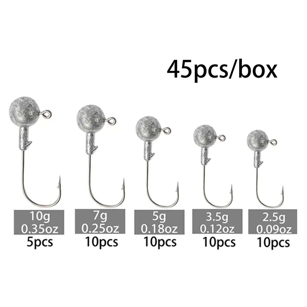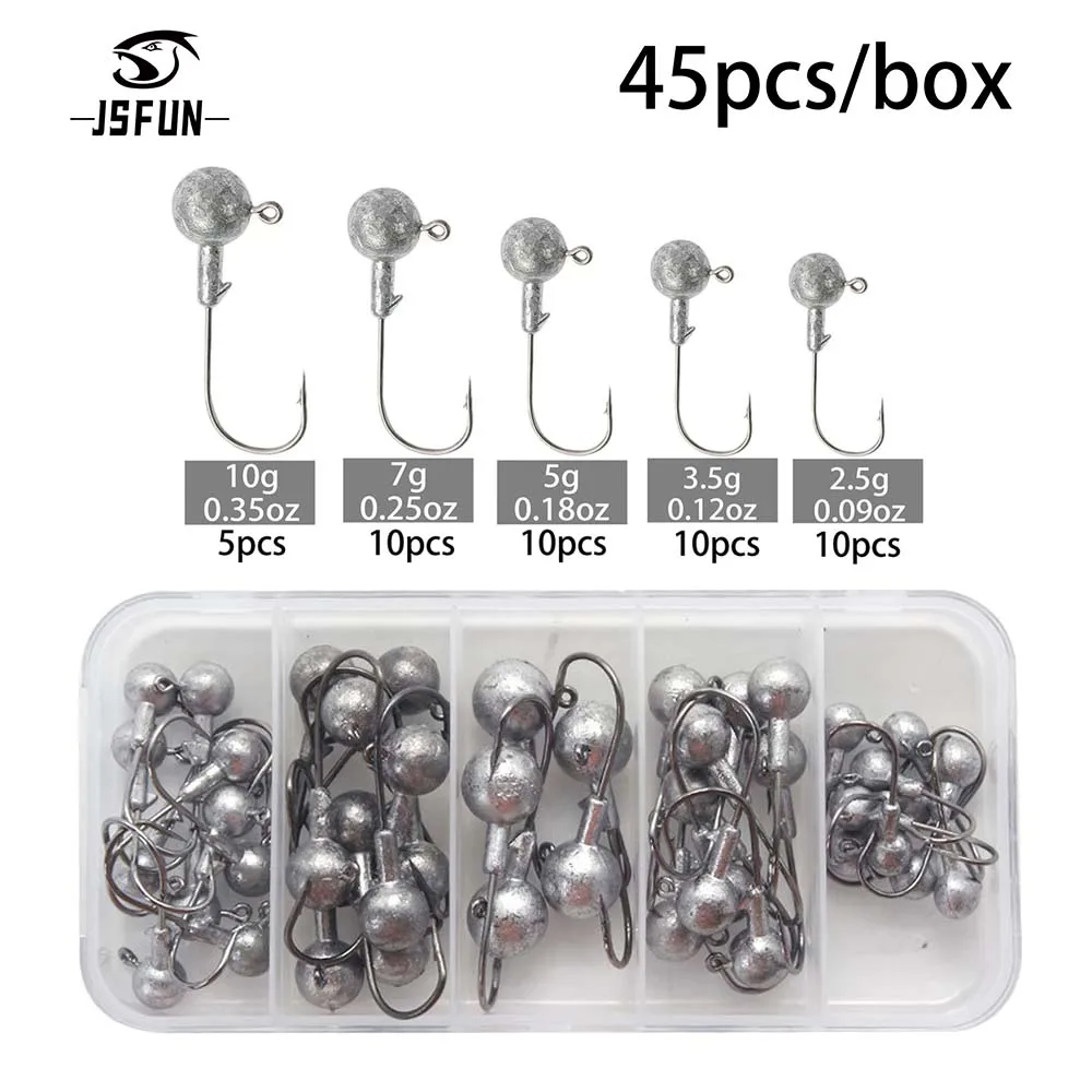 JSFUN 45 unids/caja 2,5g 3.5g 5g 7g 10g cabeza redonda Jig anzuelo de pesca afilado acero al carbono anzuelo de pesca para cebo señuelo de gusano suave