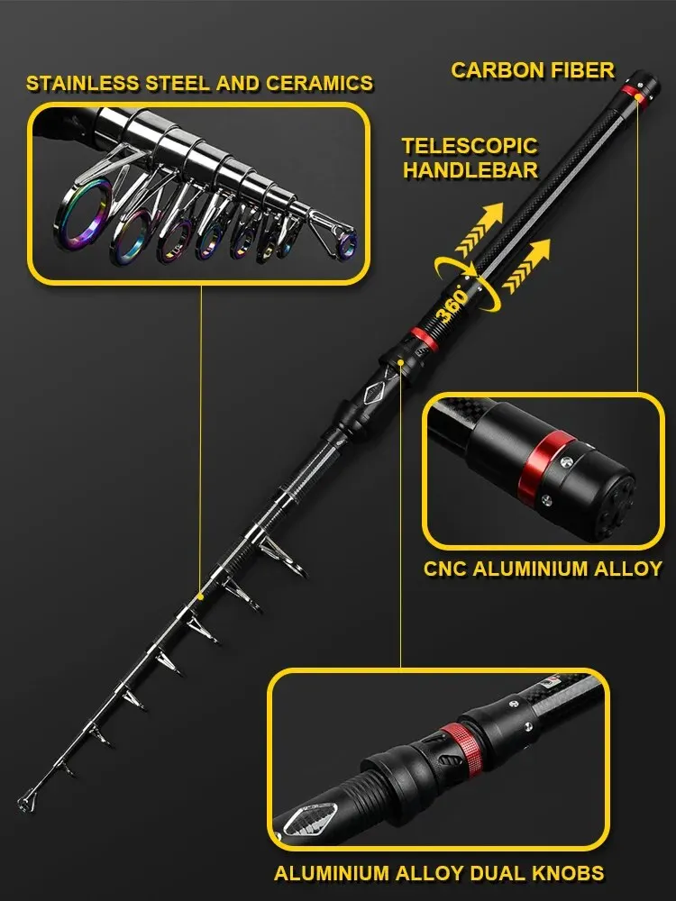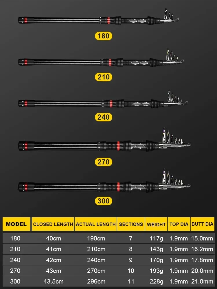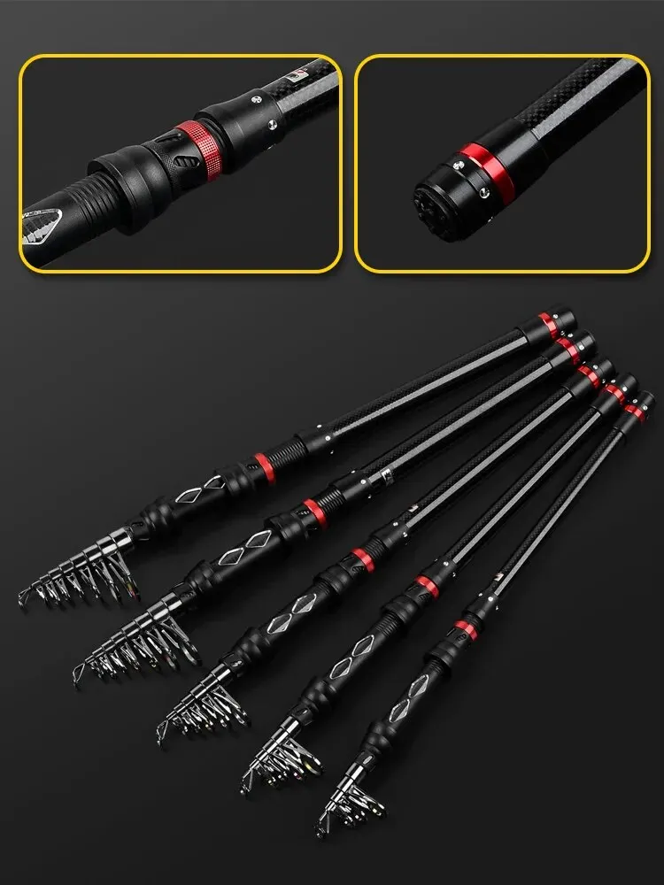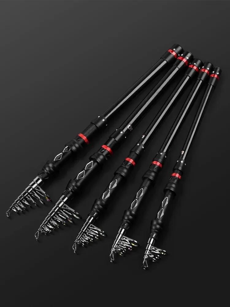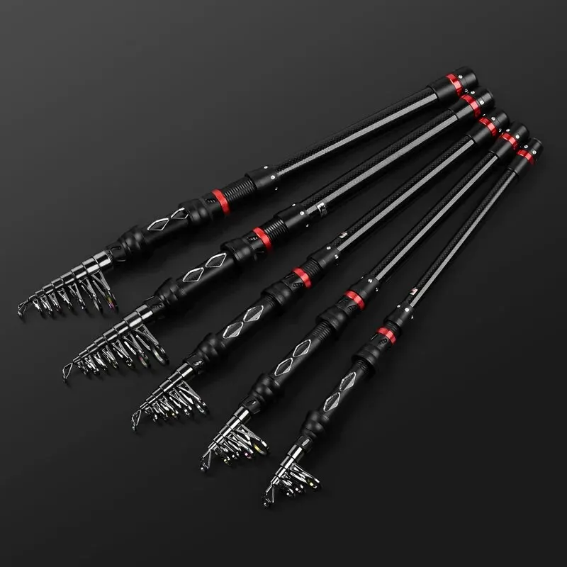 1. Nuestras barras telescópicas están hechas de fibra de carbono de pesca de alta densidad, que es durable, ligero y fácil de llevar.