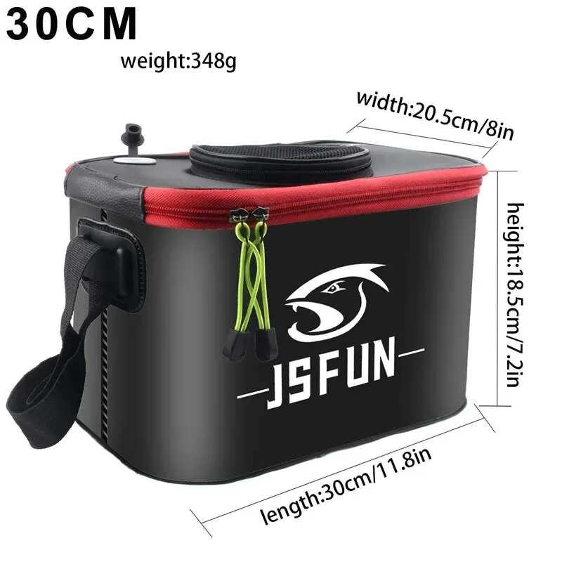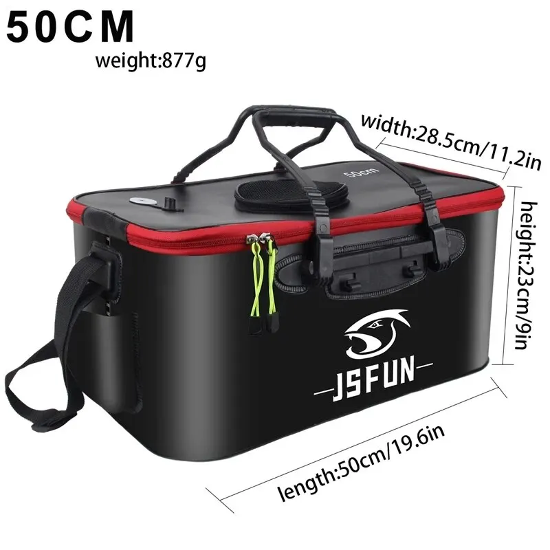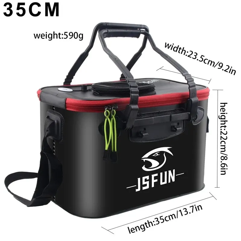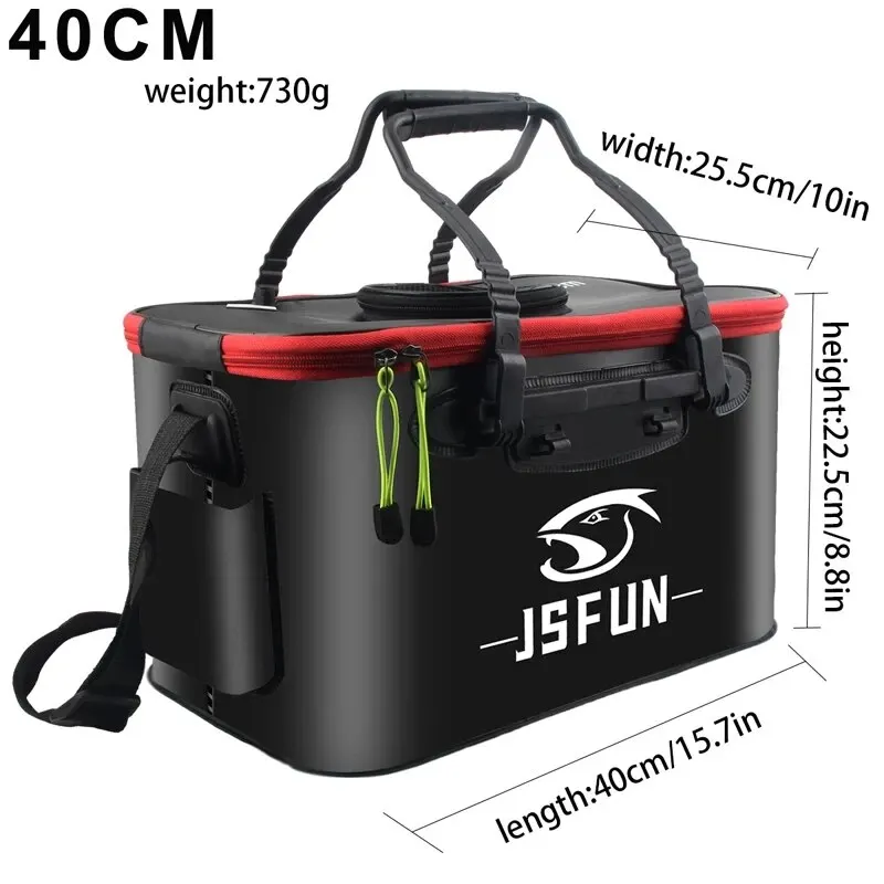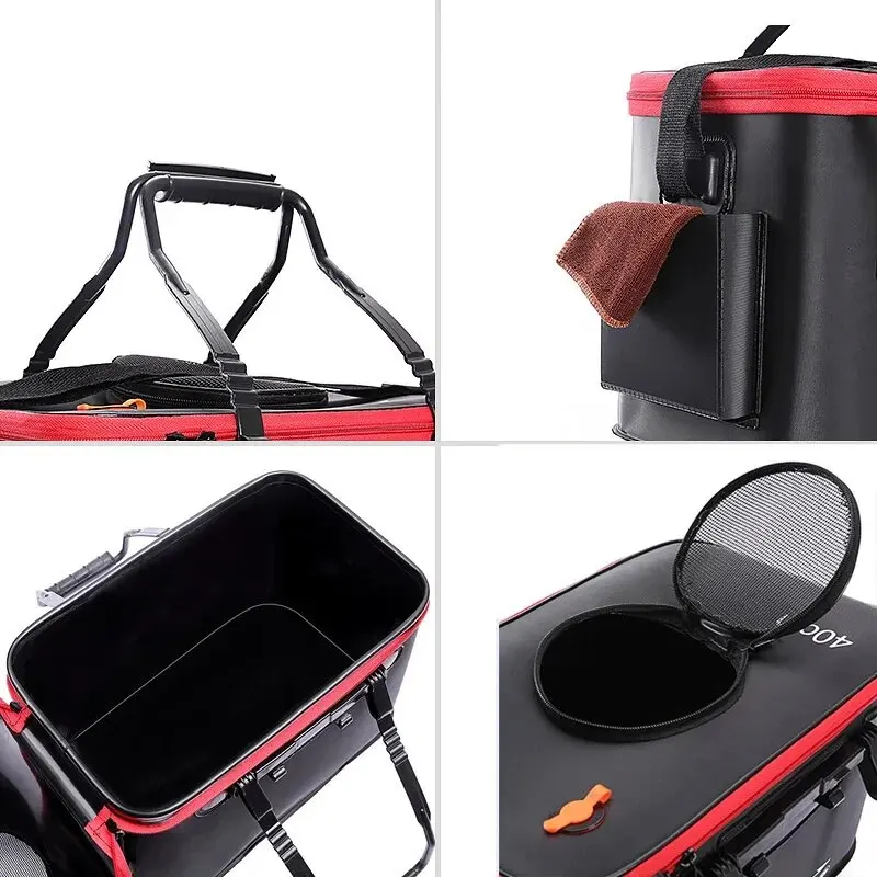 Cubo de pesca plegable portátil Cubo de cebo con material impermeable y duradero. Bueno para la pesca y limpieza de coches. Almacenamiento de agua para camping, senderismo, pero también para cebo vivo, multiherramienta. Bolsillos laterales para la bomba de oxígeno, que permitirá que sus peces respiren, y una tapa de red para que le sea más fácil poner y sacar los peces. Fácil de limpiar, cuando use un cubo de cebo de pesca plegable en la naturaleza, simplemente límpielo con agua. Las correas ajustables se adaptan a diferentes personas y son más estables que un cubo de pesca plegable redondo. Un gran regalo para su esposo o alguien que lo ama. Dale un poco de agua tibia y hará que se recupere más rápido.